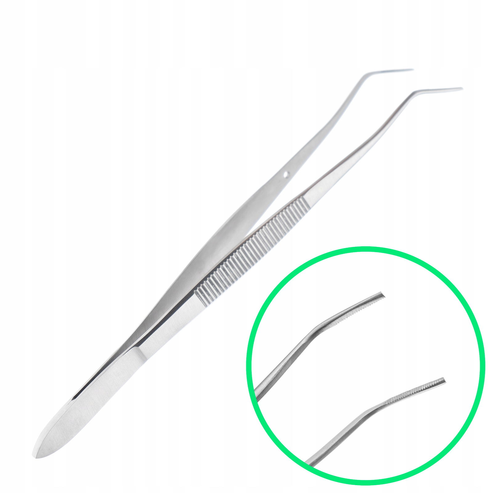 Pęseta pinceta stomatologiczna Meriam 16 cm dwugięta stal chirurgiczna