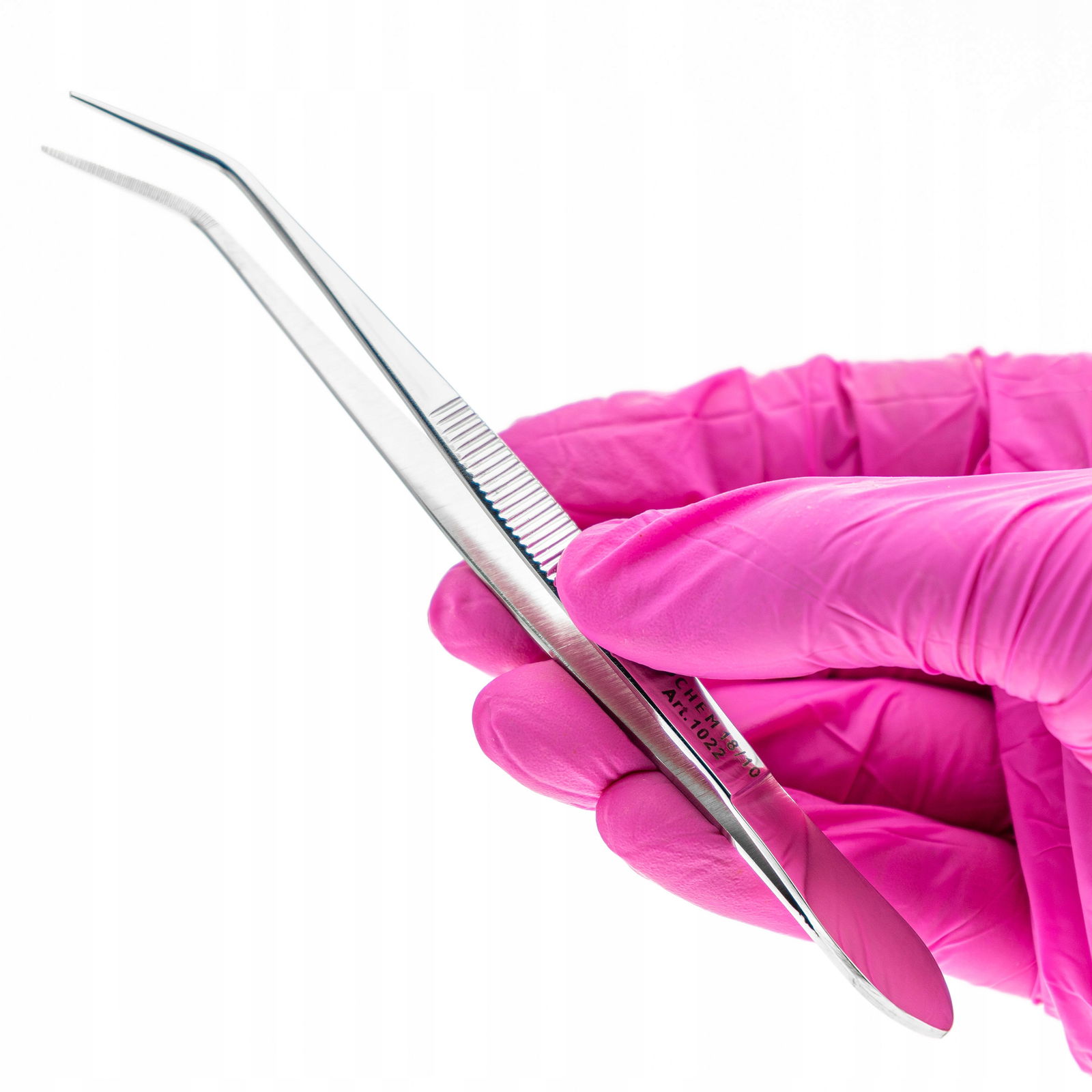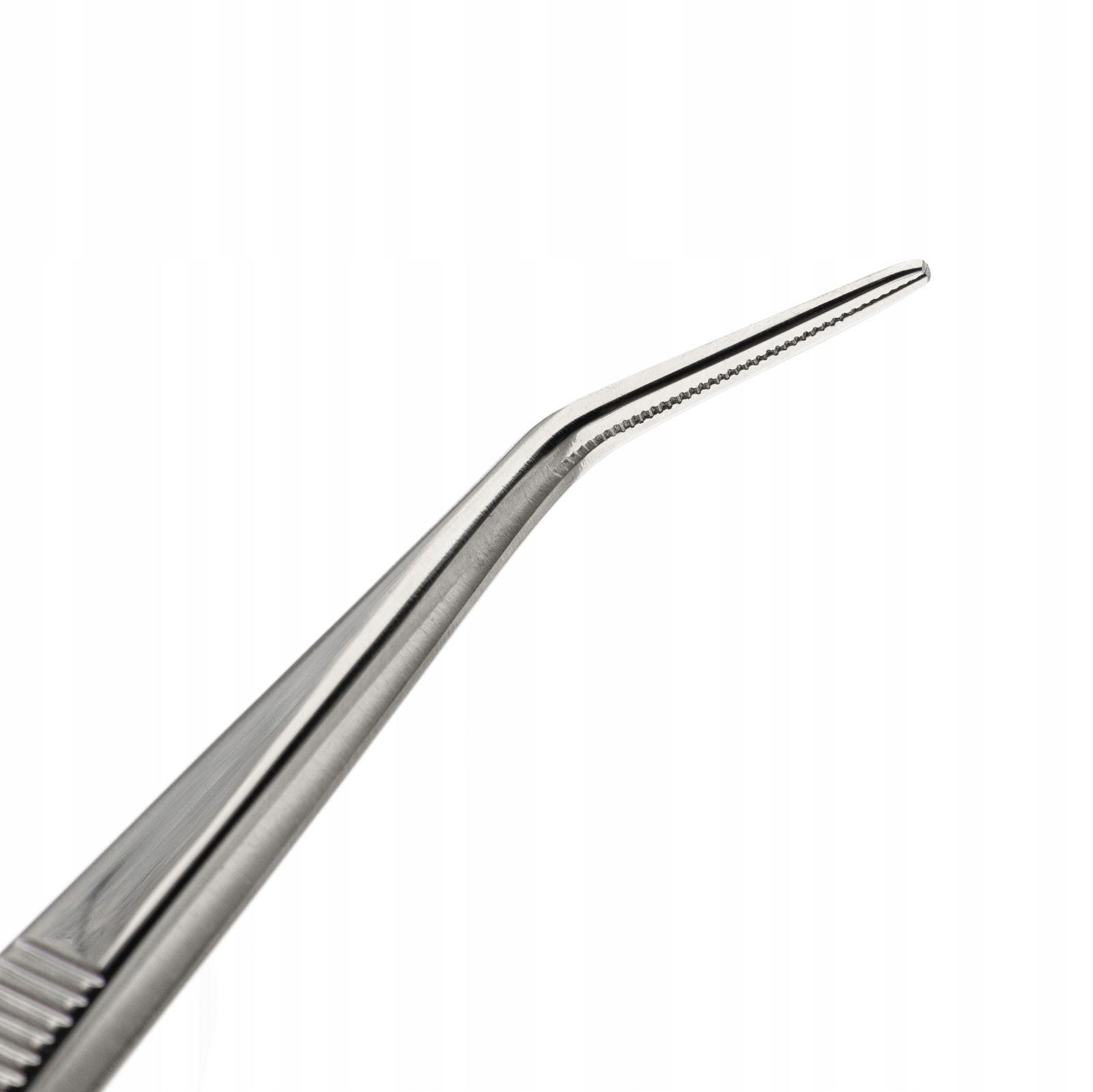Pęseta pinceta zagięta 200 mm ostre końce ząbkowany chwyt stal 18/10 BOCHEM