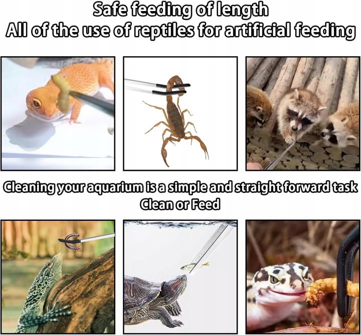 ⭐Zestaw zawiera prostą długą pęsetę i zakrzywioną pęsetę do akwarium/terrarium. Szczypce mogą bez problemu zaspokoić różne potrzeby i doskonale nadają się do karmienia małych zwierząt w TERRARIUM.
