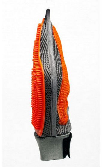 Różnej grubości i długości wypustki na gumowej stronie rękawicy pozwalają na dokładniejsze czyszczenie.