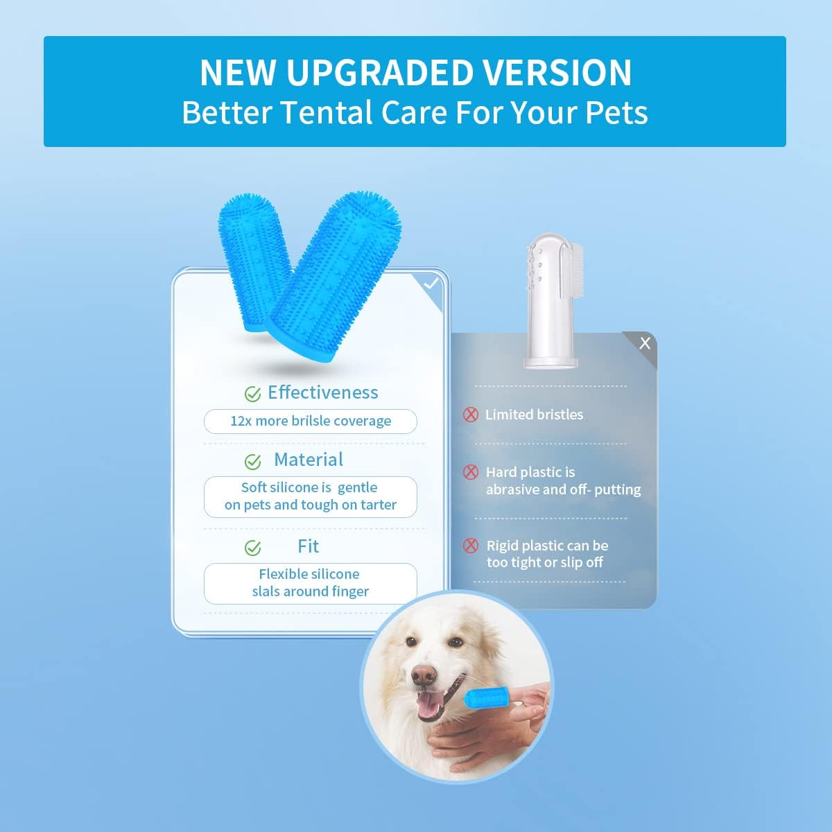Szczoteczki do zębów 360° Perfect Design Petiepaw mają silikonowe włosie 360 stopni, czyli 12 razy więcej niż stare szczoteczki do zębów. Małe i bardzo elastyczne włosie silikonowe do dokładnego i dokładnego czyszczenia zębów i dziąseł Twojego zwierzaka pod wieloma różnymi kątami, w tym pod wieloma niewidocznymi kącikami. Miękkie włosie jest wystarczająco delikatne dla wrażliwych psów i kotów.
