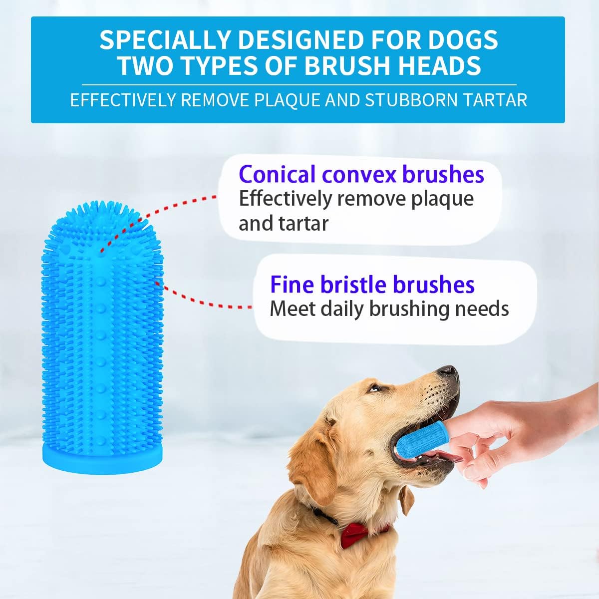 Dwa rodzaje główek szczoteczek. Zwężająca się szczoteczka o wypukłej powierzchni może skutecznie usuwać płytkę nazębną i kamień nazębny, a cienka szczoteczka może zaspokoić potrzeby codziennego szczotkowania. Szczoteczka do zębów dla psa z dwoma rodzajami główek dokładnie czyści zęby psa.
