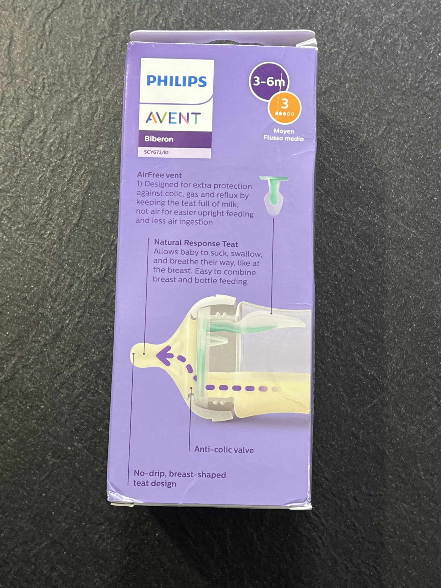 Otwór wentylacyjny AirFree: Ta butelka Avent zapobiega przedostawaniu się powietrza do brzuszka dziecka podczas karmienia w pozycji pionowej.