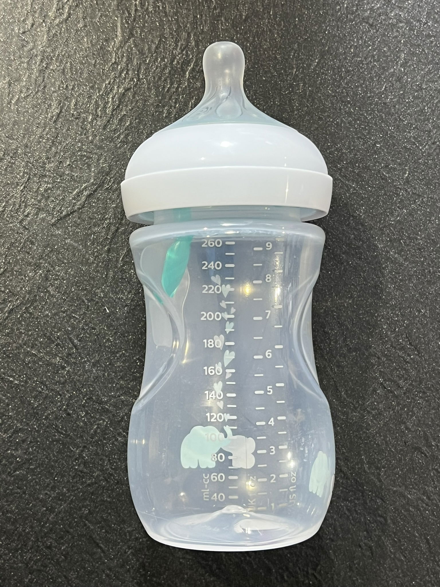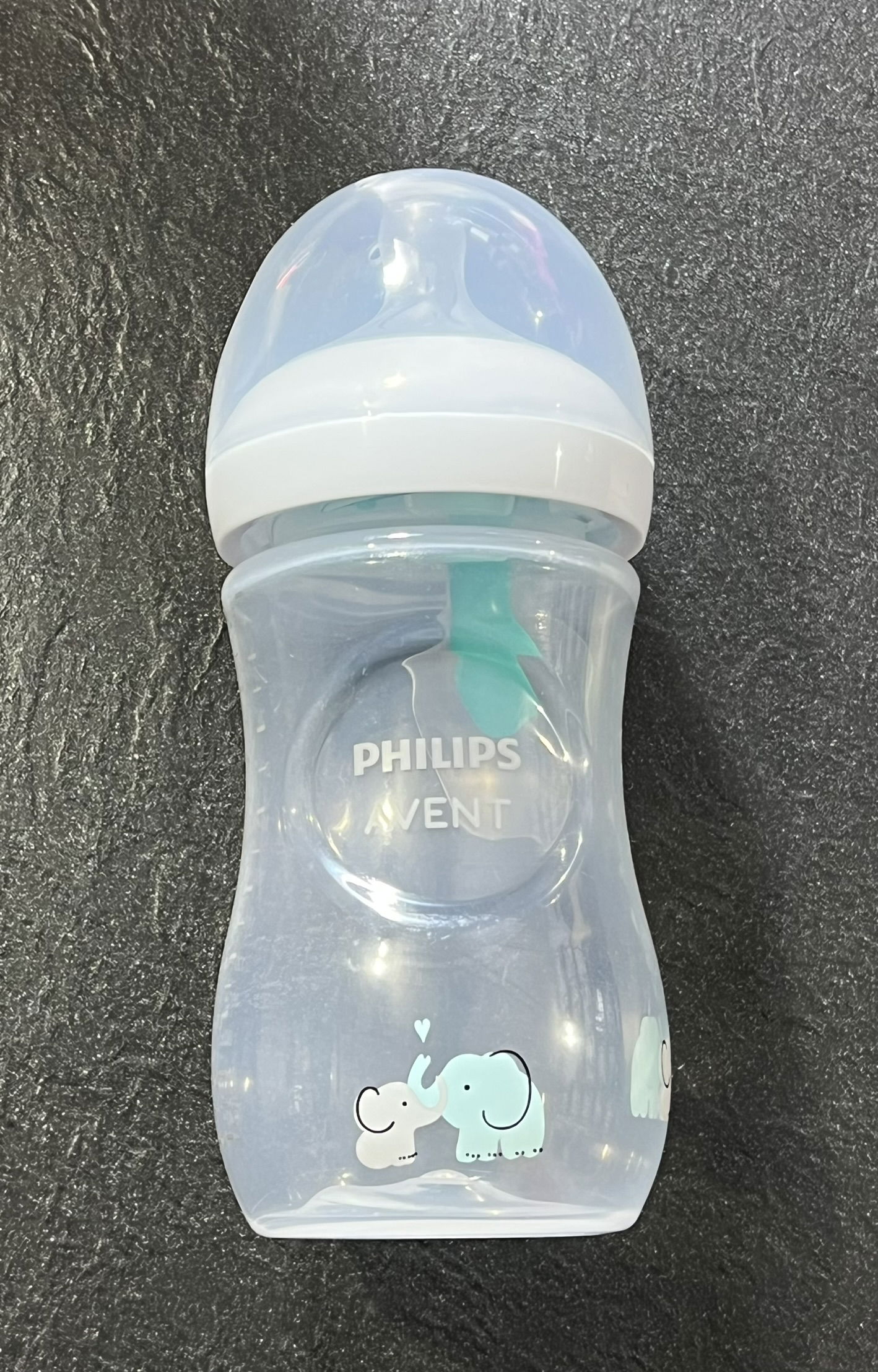 Butelka dla niemowląt Philips Avent Natural Response – butelka na mleko dla niemowląt o pojemności 260 ml z odpowietrznikiem AirFree, bez BPA, dla noworodków od 1. miesiąca życia, wzór słonia (model SCY673/81)