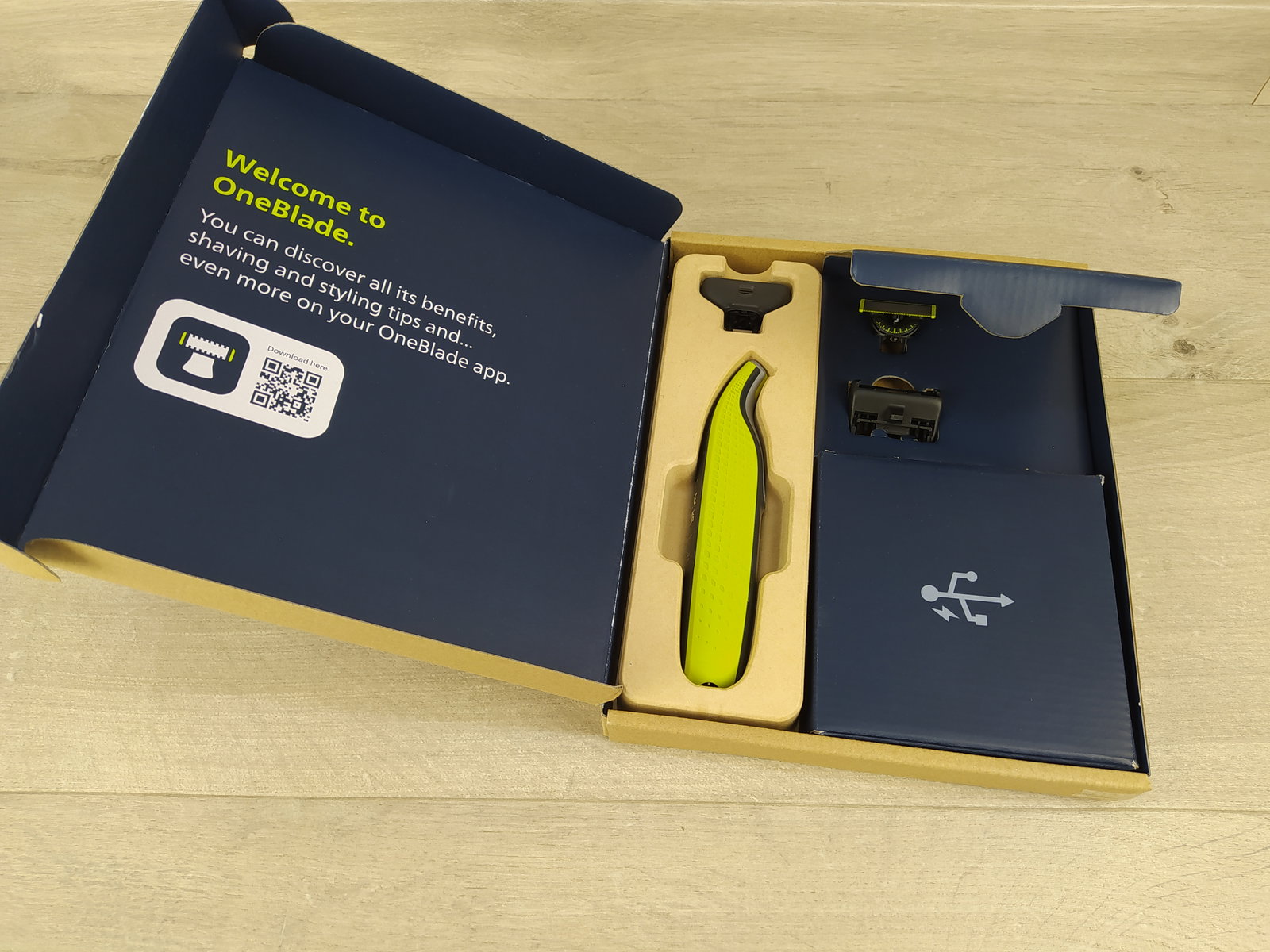 - Ładuj w dowolnym czasie i miejscu: dzięki kablowi ładującemu USB-A urządzenie OneBlade można ładować w domu lub w podróży, na co dzień lub w podróży (zasilacz nie jest dołączony). Do ładowania produktu należy używać wyłącznie certyfikowanego adaptera USB ze wtyczką A i napięciem wyjściowym 5,1 A.