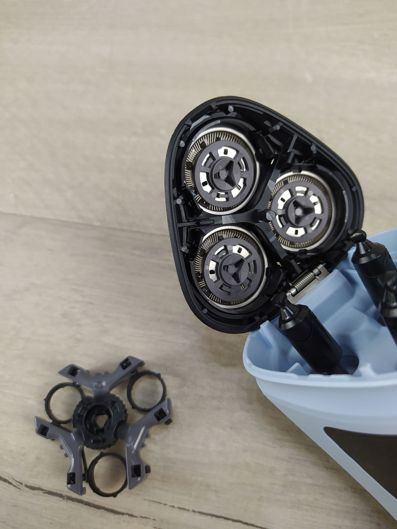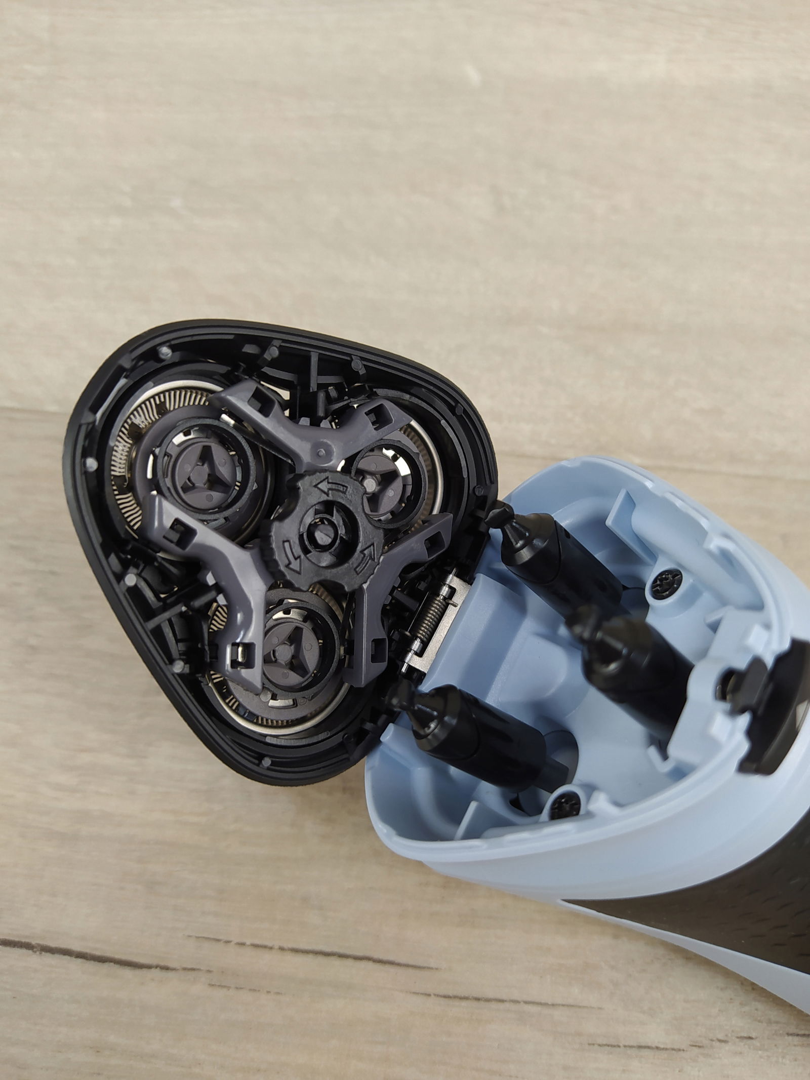- Bezpieczne golenie: sprężynowe głowice golące maszynki poruszają się elastycznie w czterech kierunkach, aby zapewnić równomierny kontakt ze skórą i wygodne golenie bez skaleczenia.