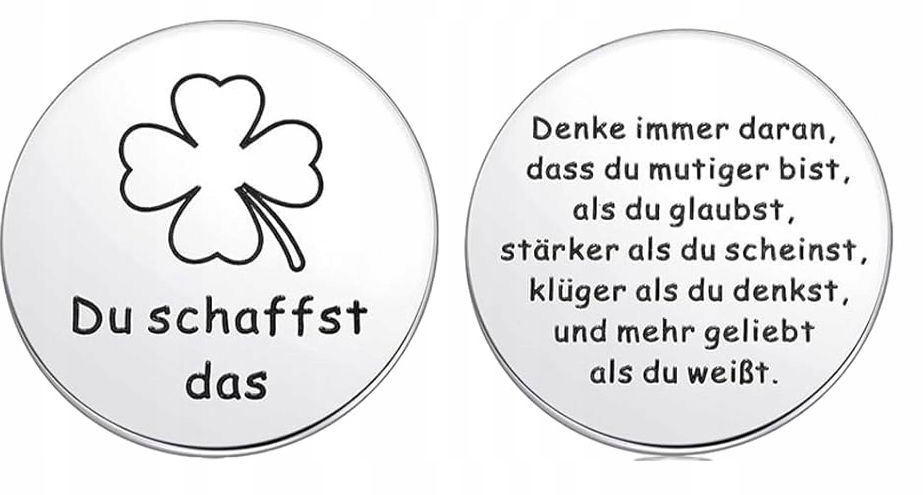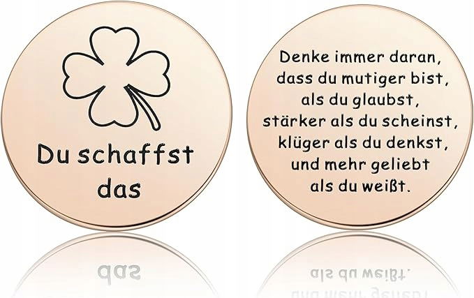 2 sztuki - srebrna oraz złota wygrawerowane inspirujące niemieckie słowa po obu stronach, z czarnym aksamitnym woreczkiem do łatwego przechowywania, kompletny zestaw do dzielenia się z innymi, praktyczny, aby zachęcić ludzi do dalszego rozwoju
