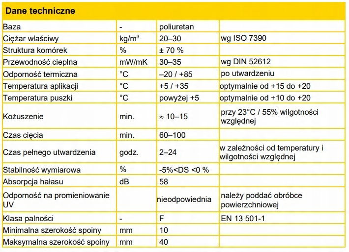 - ⭐️ Szybkoschnąca formuła – Umożliwia szybkie zakończenie prac montażowych i izolacyjnych, co przekłada się na krótszy czas realizacji projektów.