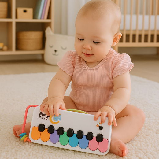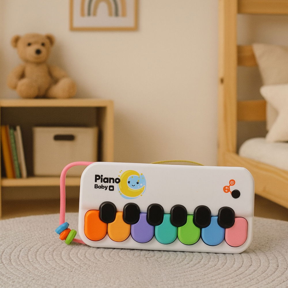 Dziecięce pianinko to niezastąpiona zabawka muzyczna dla najmłodszych, która nie tylko zachęca do eksploracji dźwięków i kolorów, ale również rozwija zdolności sensoryczne i koordynację ruchową. Dzięki kolorowym klawiszom maluchy mogą wspaniale bawić się, tworząc własne melodie. Lekka konstrukcja z uchwytem ułatwia przenoszenie i trzymanie dla małych rączek. Zabawka wykonana jest z bezpiecznych materiałów zgodnych z normami bezpieczeństwa dla dzieci. Pianinko stymuluje kreatywność, rozwija wyobraźnię oraz zapewnia niezapomnianą rozrywkę. W zestawie znajduje się pianinko Baby Piano oraz elastyczny uchwyt, co czyni go idealnym prezentem dla małych odkrywców kolorów i dźwięków.