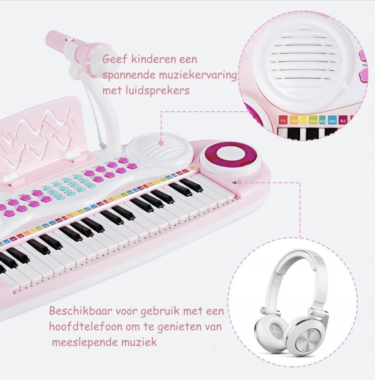 Zabawkowe pianino z 27 klawiszami jest doskonale zaprojektowane dla dzieci i ma wiele funkcji, w tym 8 rytmów, 8 dźwięków instrumentów i 4 dźwięki perkusji, aby mały muzyk mógł swobodnie grać. Ponadto istnieje zewnętrzny mikrofon i funkcja „nagrywaj i odtwarzaj". Ponadto dzieci mogą cieszyć się muzyką z przyjemnym błyskiem podczas gry. Ma również kompatybilność z kablem audio, aby podłączyć telefon, odtwarzacz MP3, komputer do pianina, aby uzyskać bardziej wciągające wrażenia muzyka. I nigdy nie martw się o materiał, którego dzieci dotykają bezpośrednio. Klawiatura wykonana jest z ekologicznego i bezpiecznego materiału ABS, który zawsze zapewni bezpieczeństwo twoim dzieciom podczas zabawy.