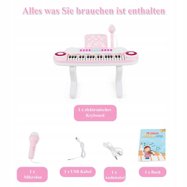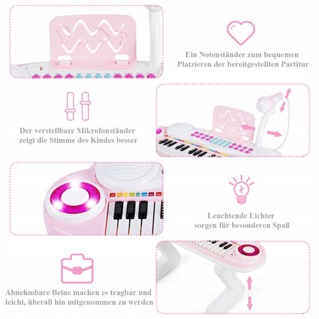 Idealny prezent dla dzieci Dzięki odłączanym nogom dzieci mogą z łatwością grać w dowolnym miejscu, aby w pełni rozwinąć swoje wewnętrzne talenty muzyczne, co pomaga rozwinąć optymizm dzieci we włączaniu radosnej muzyki do gry. Wymiary całkowite: 48 x 20 x 38 cm (dł. x szer. x wys.); Zalecany wiek: powyżej 18 miesięcy.