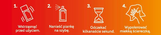 1️⃣ Aplikacja: Nanieś piankę równomiernie na czyszczoną powierzchnię z odległości około 20-30 cm.