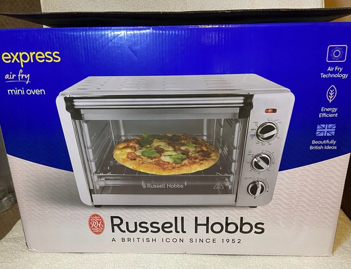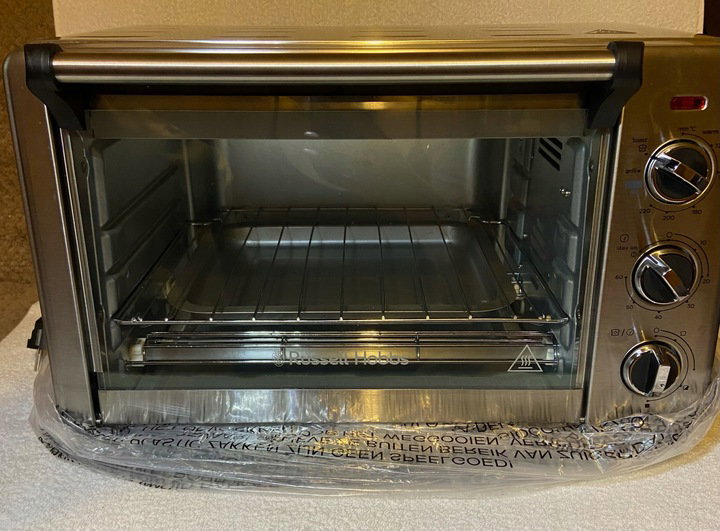 - nazwa przedmiotu: Russell Hobbs piekarnik 5w1: frytkownica na gorące powietrze, mini piekarnik, grill, toster, funkcja podgrzewania, pojemność 20L, szyba niskoemisyjna, moc 1500W, srebrny, Express Air Fry 26680-56