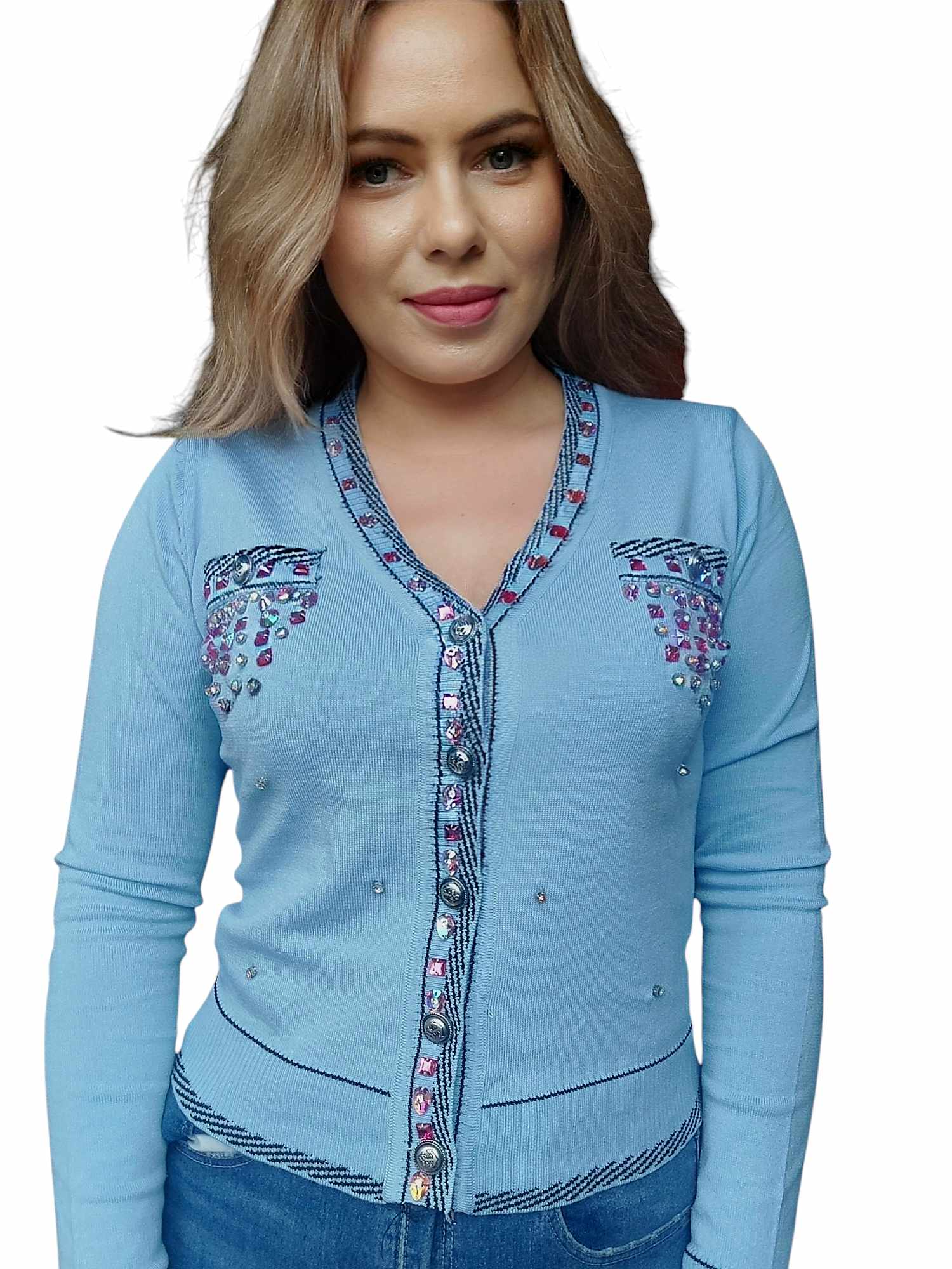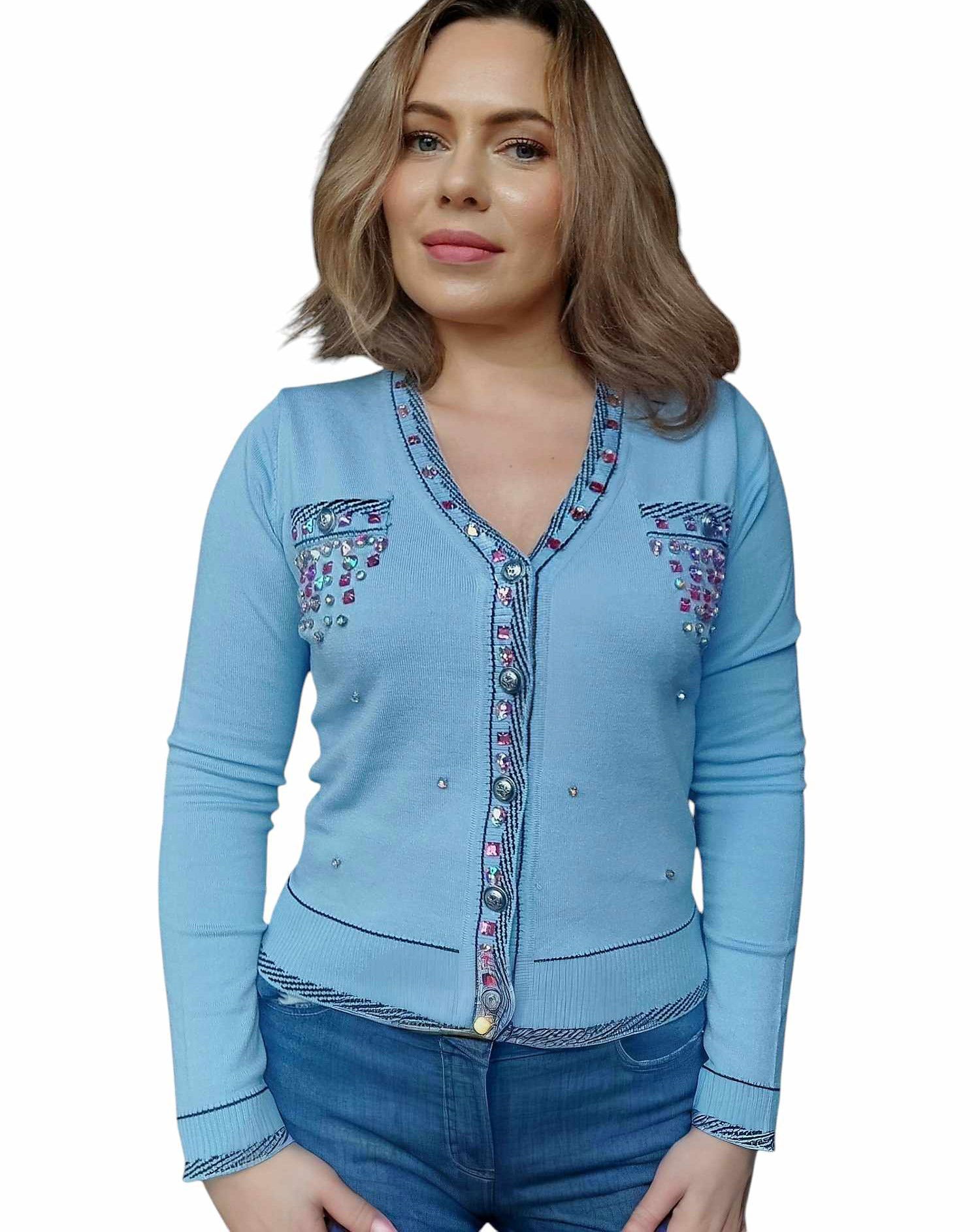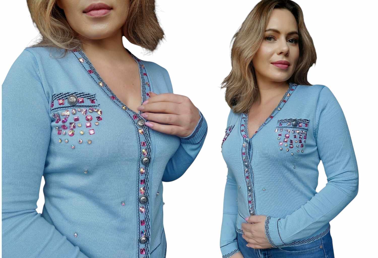 PIĘKNY sweter kardigan ozdobiony kryształkami – 100% wiskoza
