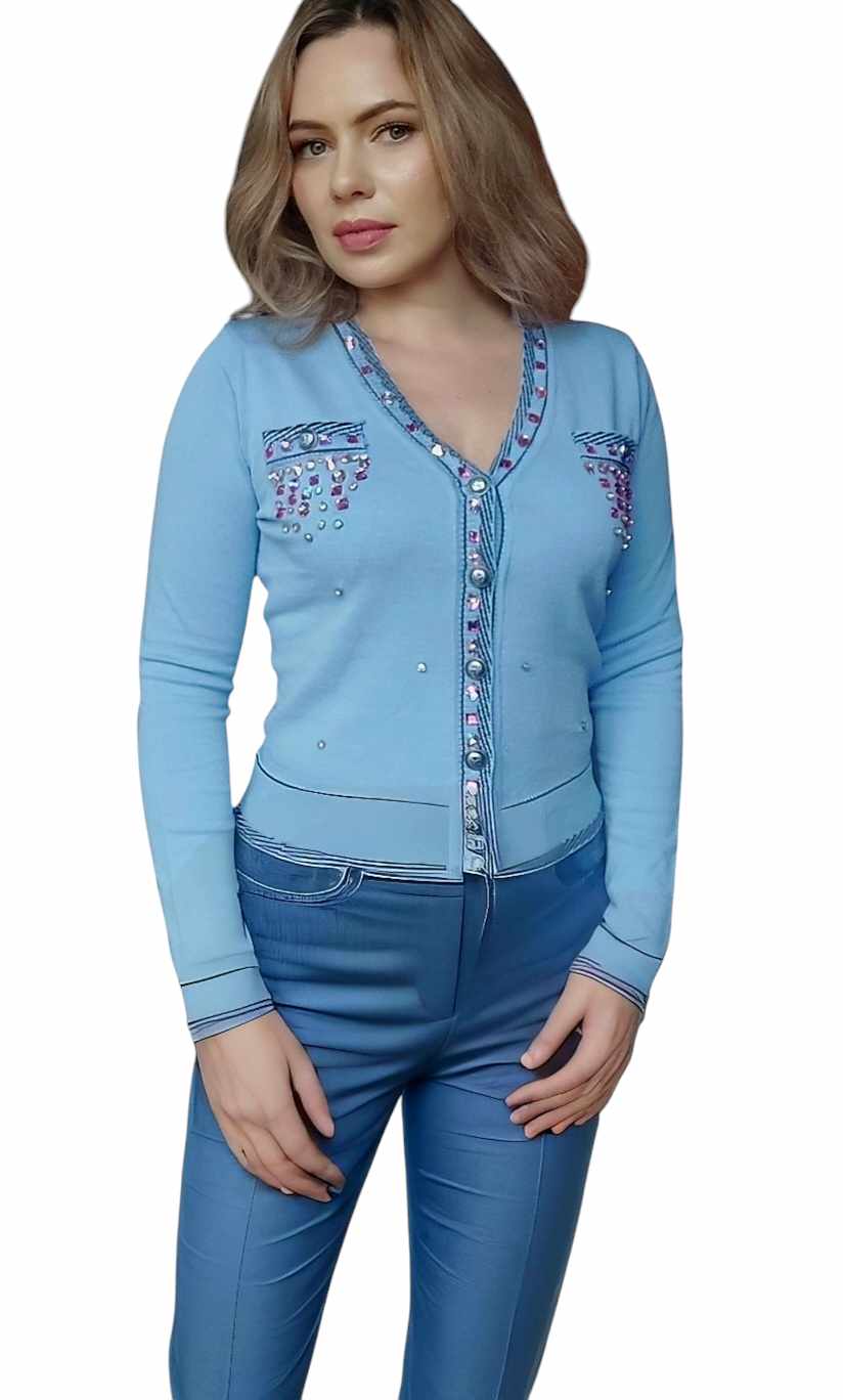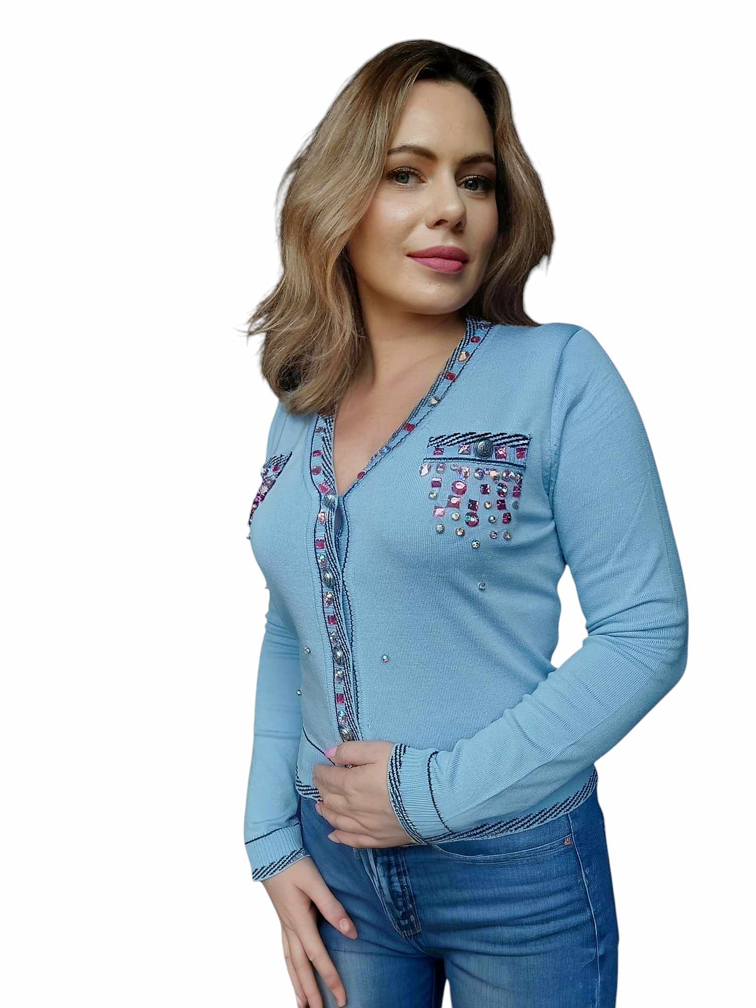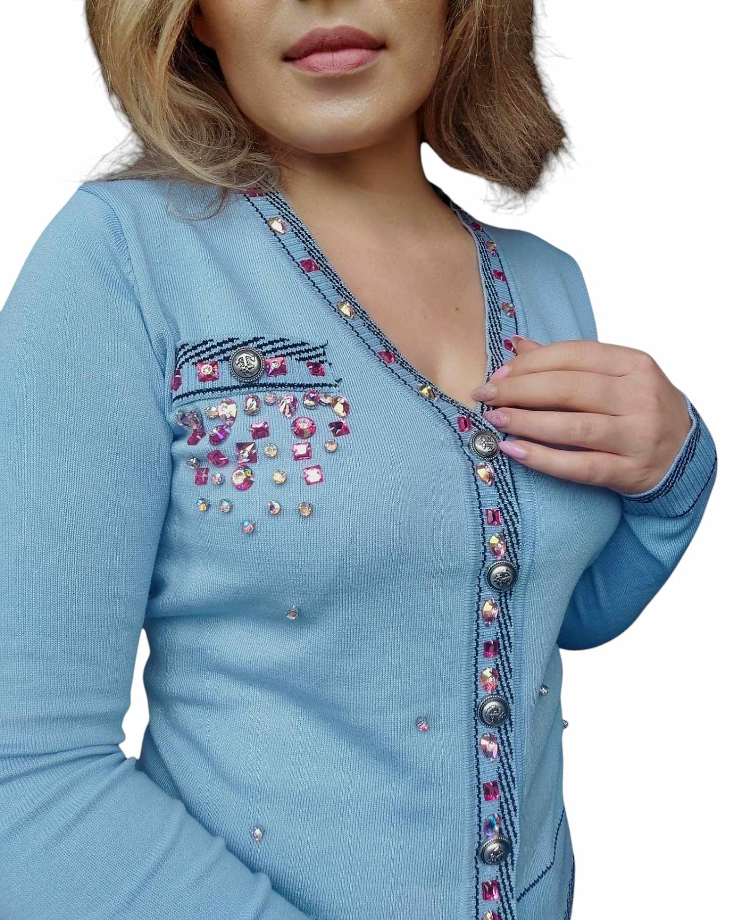 PIĘKNY sweter kardigan ozdobiony kryształkami – 100% wiskoza