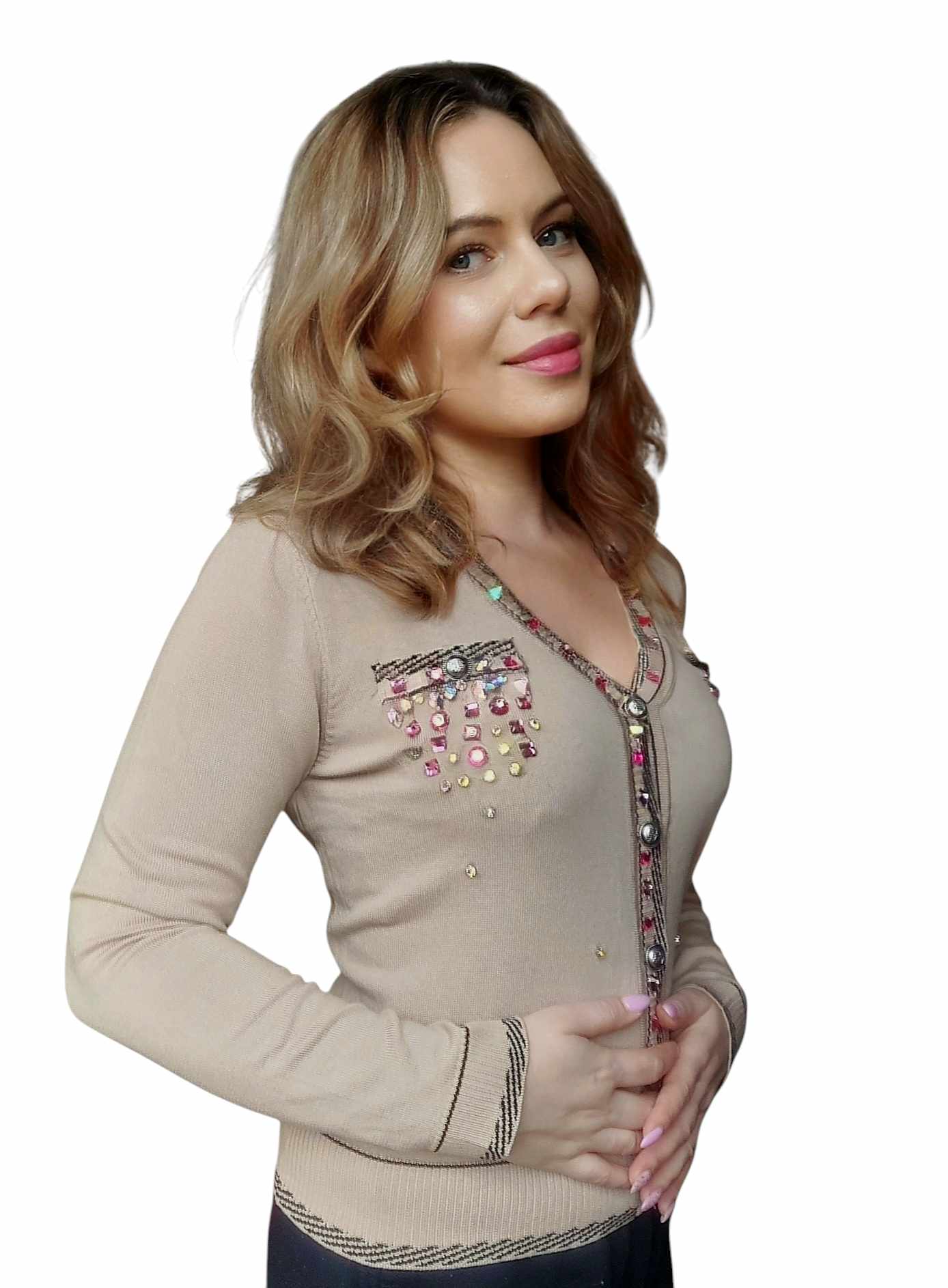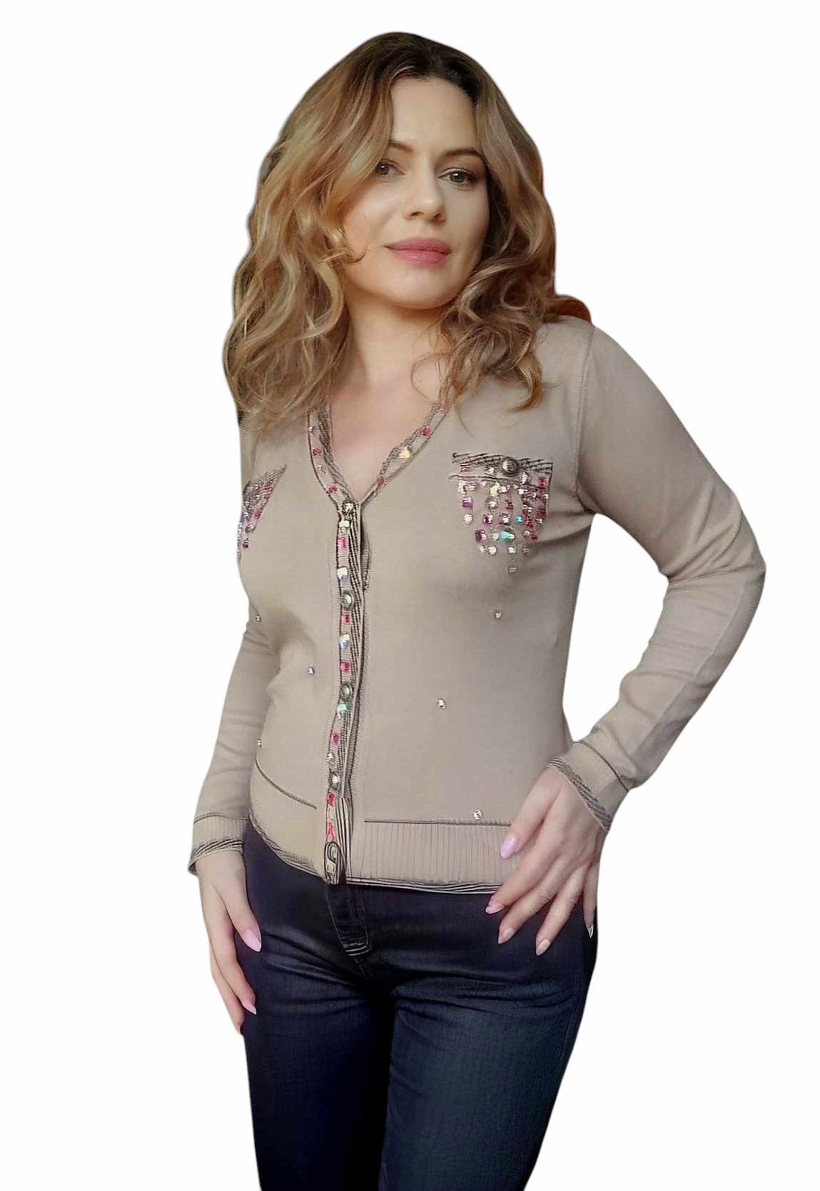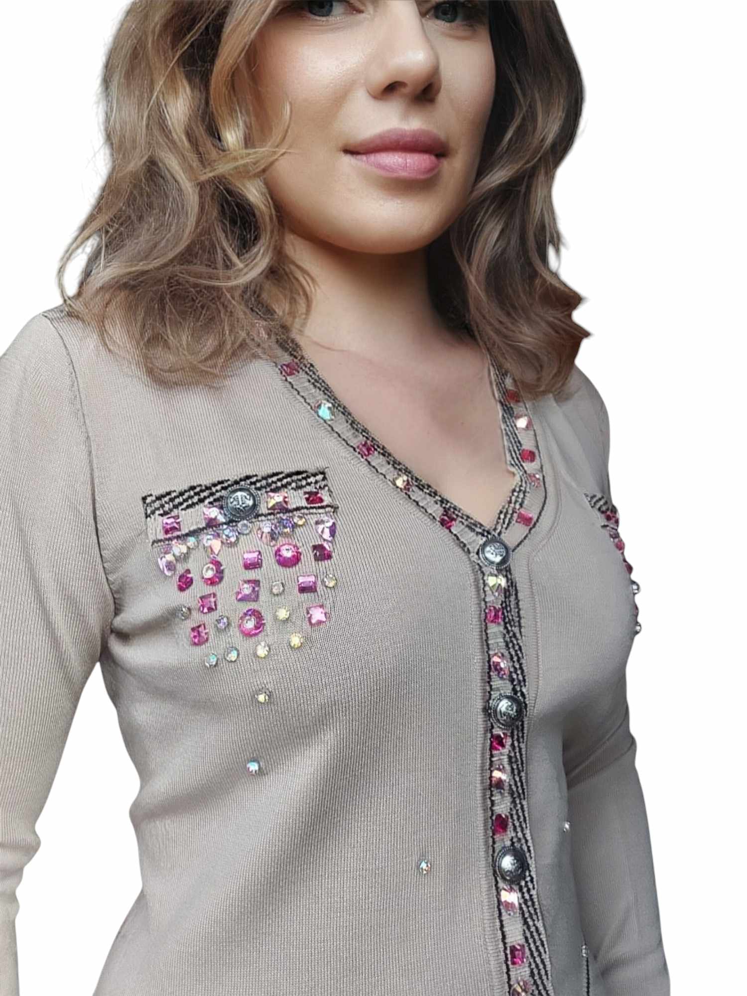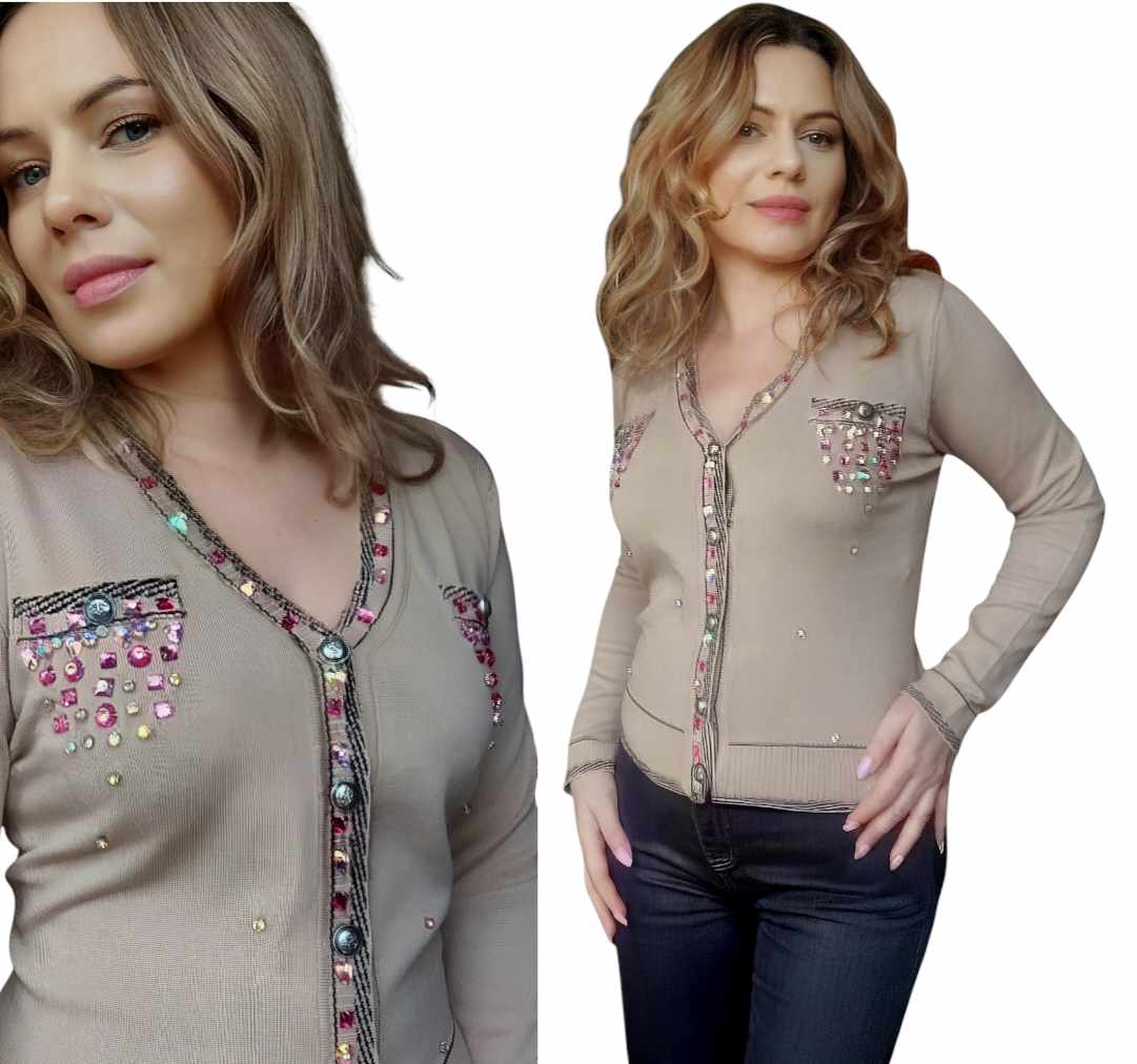 PIĘKNY sweter kardigan ozdobiony kryształkami – 100% wiskoza