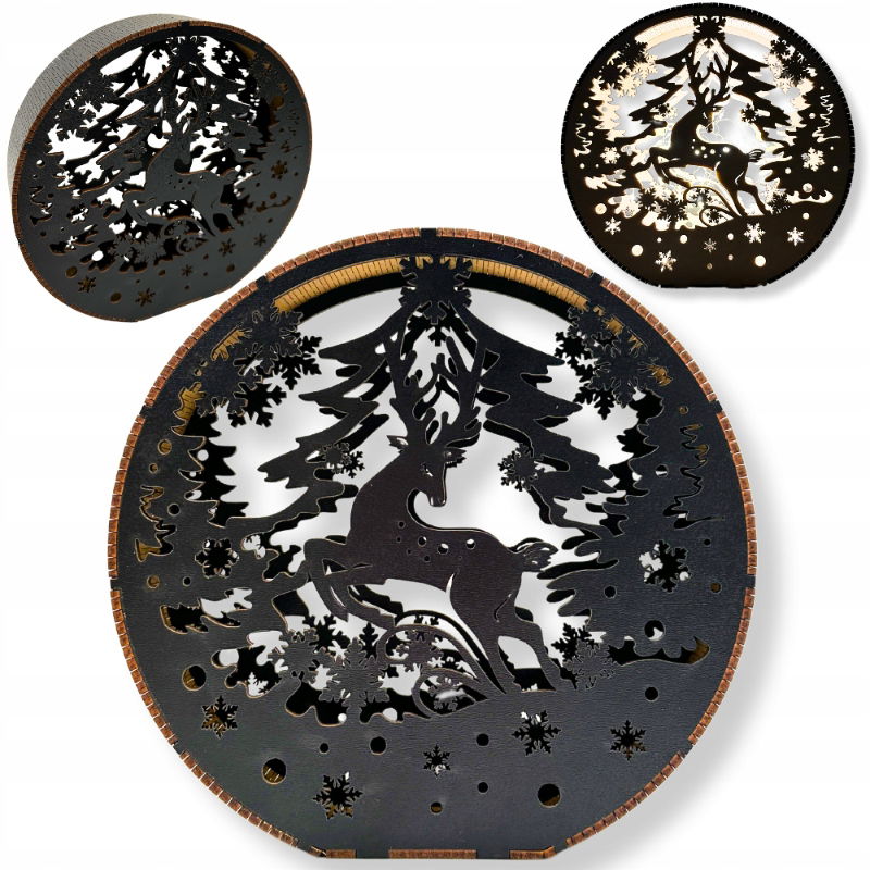 Dekoracyjna lampka świąteczna w stylu 3D, która wprowadzi do twojego domu magiczną świąteczną atmosferę. Lampion z wizerunkiem renifera, choinki i śnieżynek. Jest to jeden z podstawowych motywów ❤️Świąt Bożego Narodzenia❤️