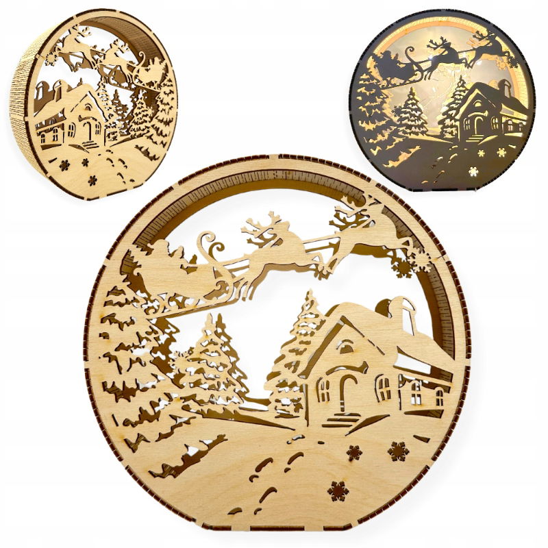 Dekoracyjna lampka świąteczna w stylu 3D, która wprowadzi do twojego domu magiczną świąteczną atmosferę. Lampion z wizerunkiem Świętego Mikołaja mknącego na saniach nad ośnieżonym domkiem. Jest to tradycyjny obrazek ❤️Świąt Bożego Narodzenia❤️