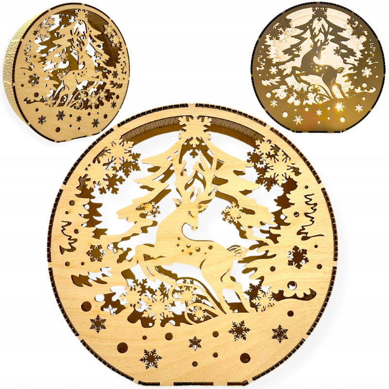 Dekoracyjna lampka świąteczna w stylu 3D, która wprowadzi do twojego domu magiczną świąteczną atmosferę. Lampion z wizerunkiem renifera, choinki i śnieżynek. Jest to jeden z podstawowych motywów ❤️Świąt Bożego Narodzenia❤️