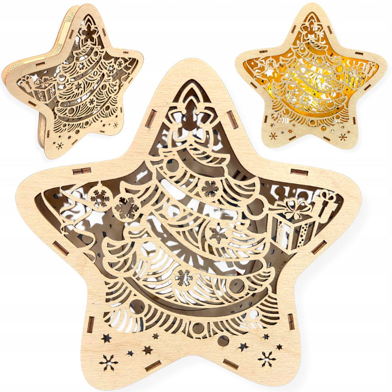 Dekoracyjna lampka świąteczna w stylu 3D, która wprowadzi do twojego domu magiczną świąteczną atmosferę. Lampion w kształcie Gwiazdy z wizerunkiem Choinki w zimowej aurze. Jest to tradycyjny obrazek ❤️Świąt Bożego Narodzenia❤️