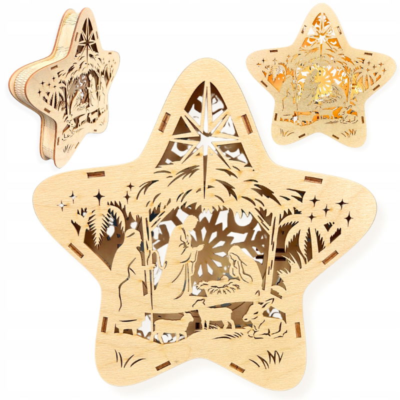 Dekoracyjna lampka świąteczna w stylu 3D, która wprowadzi do twojego domu magiczną świąteczną atmosferę. Lampion w kształcie Gwiazdy z wizerunkiem Stajenki w zimowej aurze. Jest to tradycyjny obrazek ❤️Świąt Bożego Narodzenia❤️