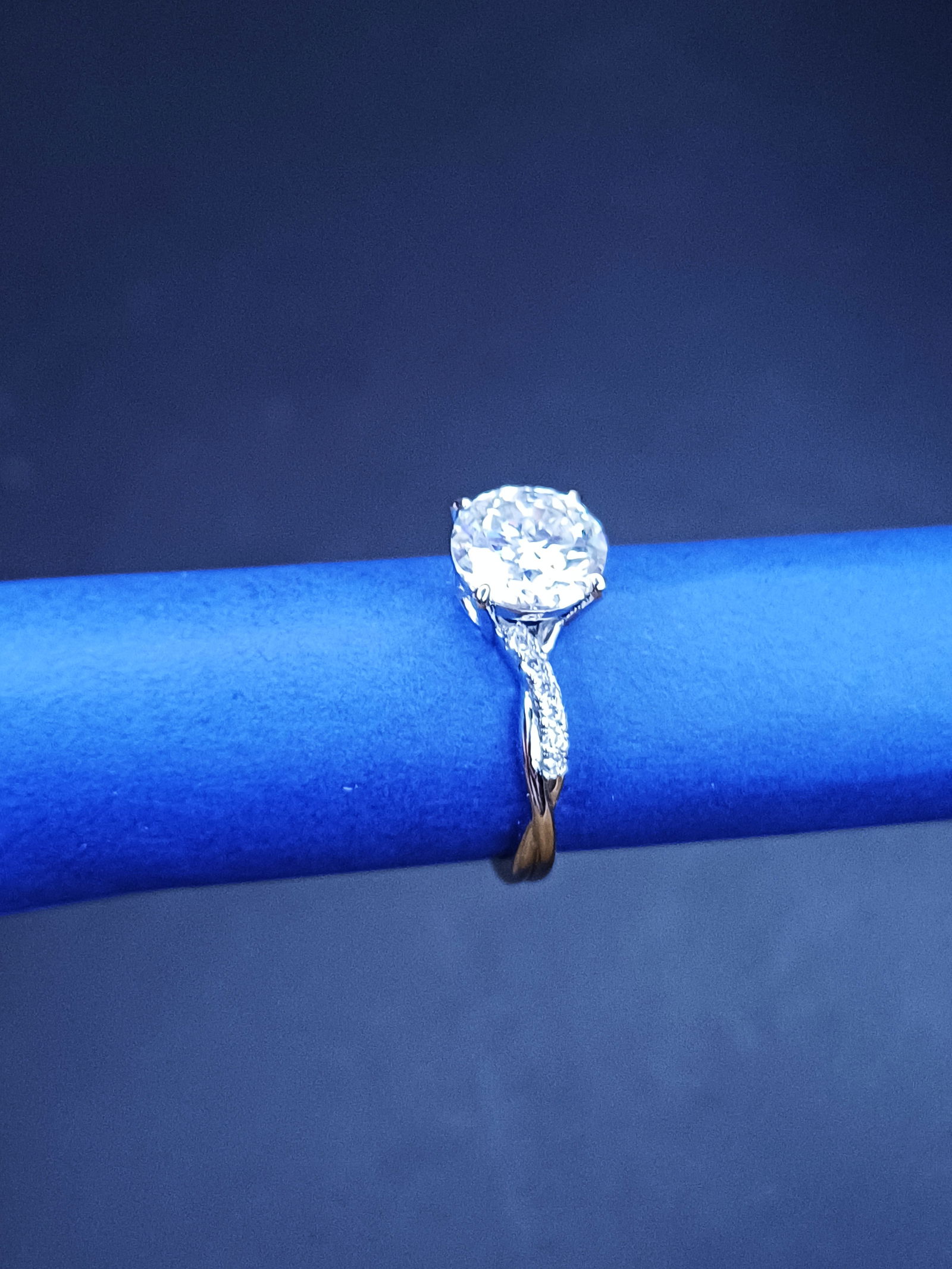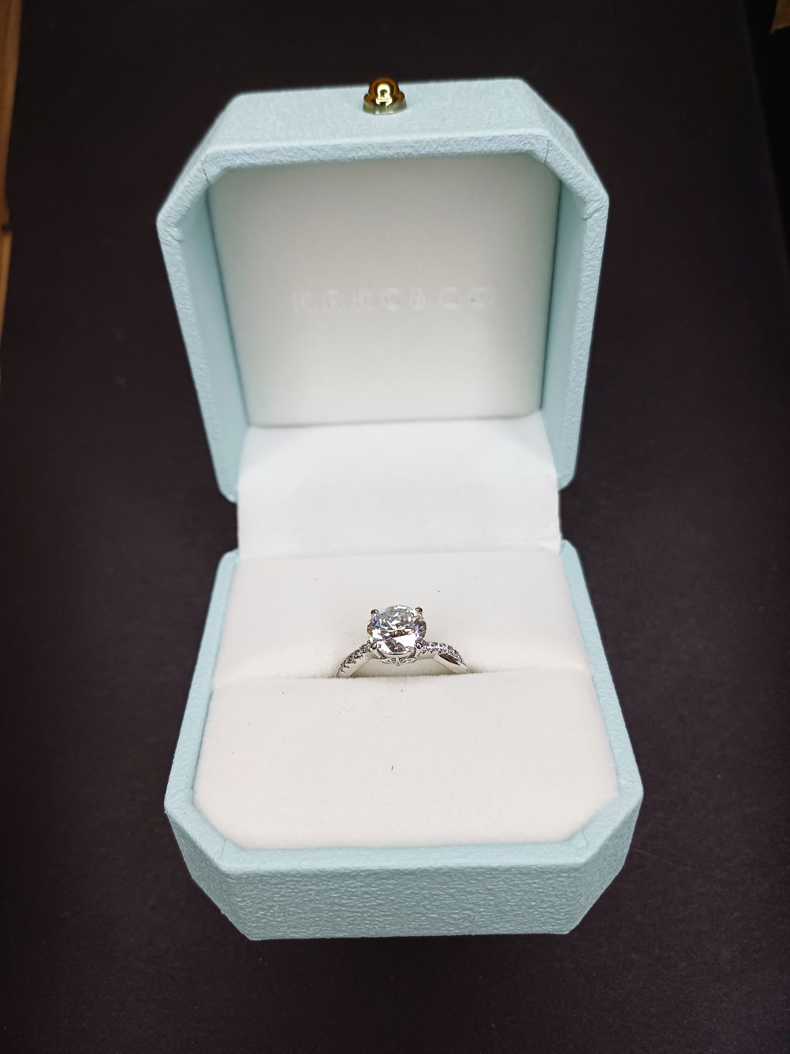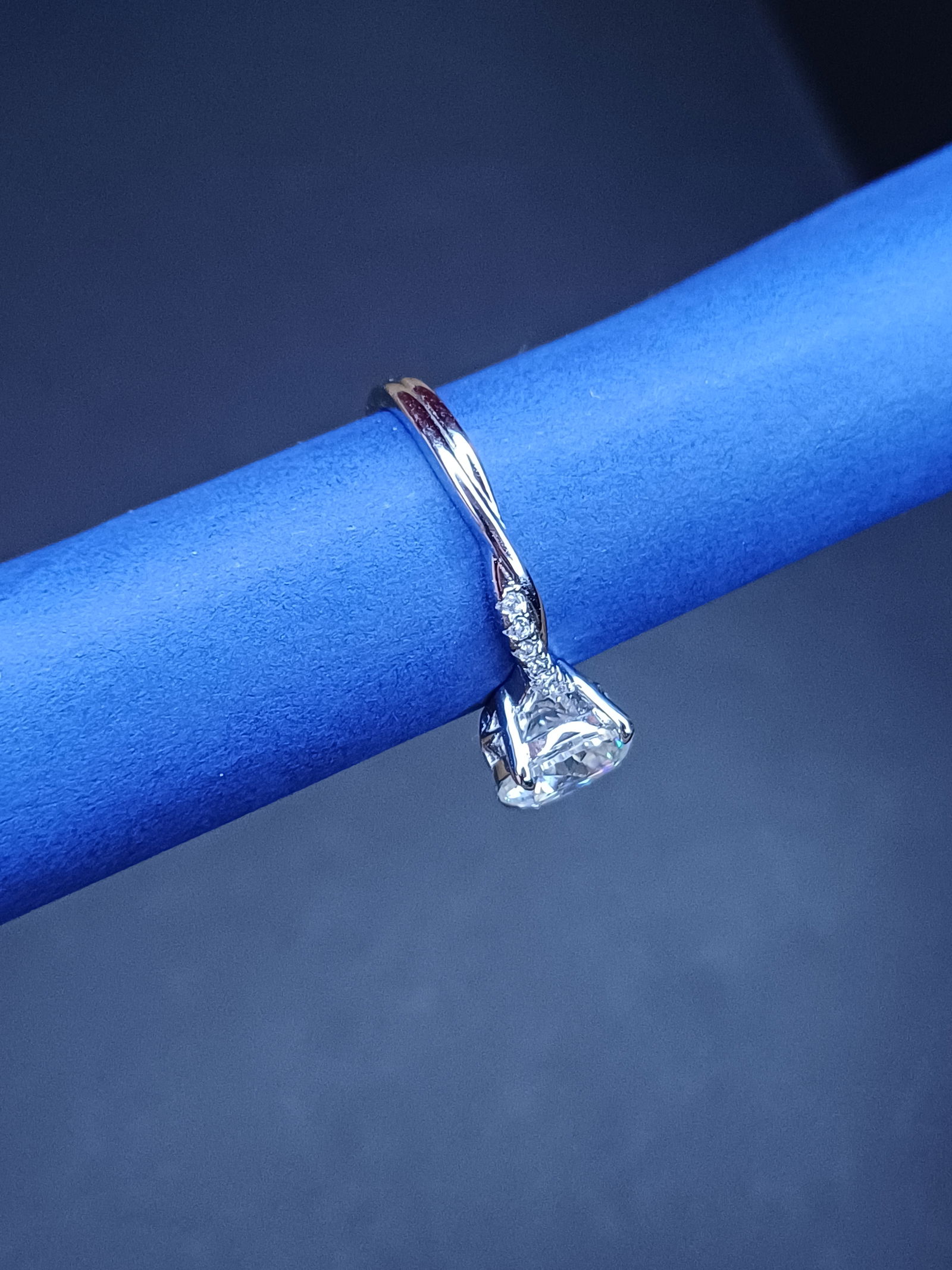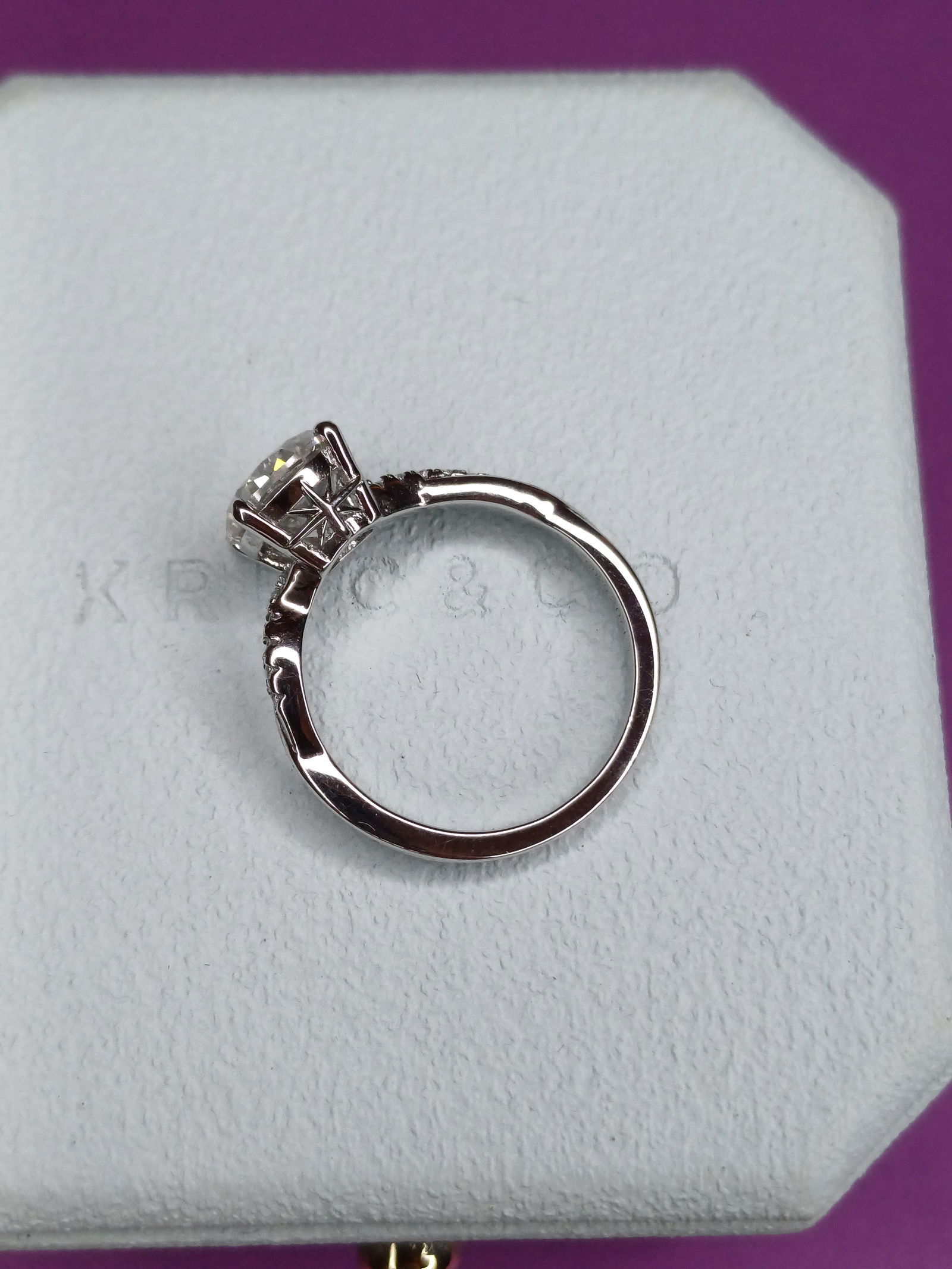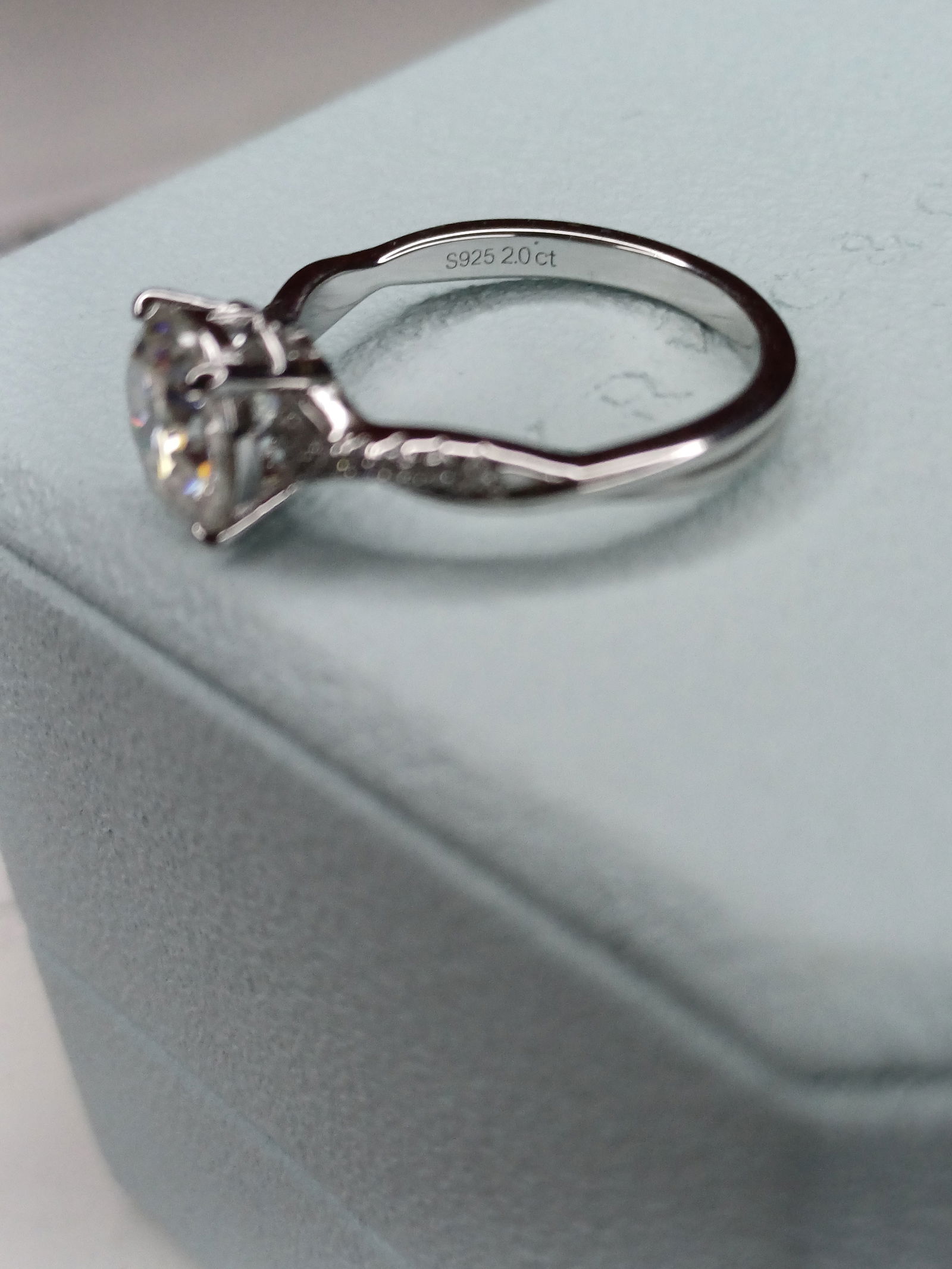 -pierścionek ze srebra 925, -2.0 ct moissanit -średnica 16,7mm, co odpowiada rozmiarowi 13 -spleciona część z cyrkoniami -piękne pudełko