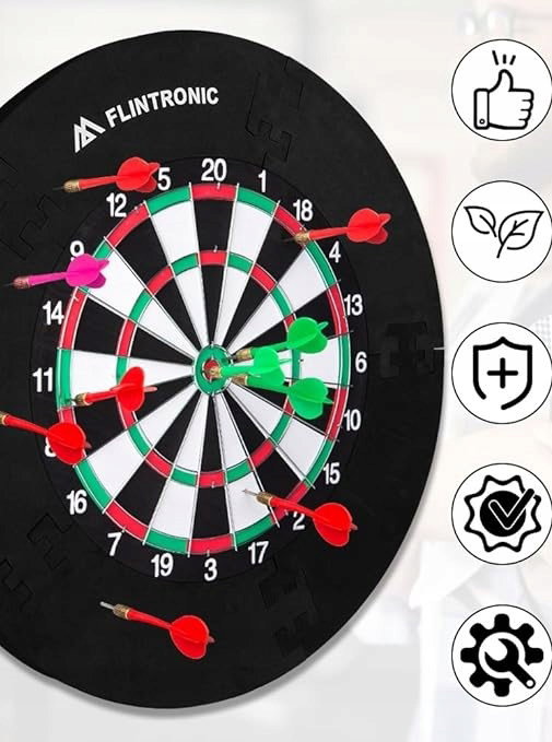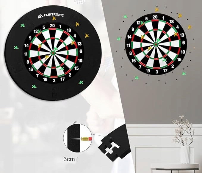 - Idealny prezent: tarcza do rzutek flintronic jest idealna dla początkujących, profesjonalistów i zapalonych entuzjastów rzutek. Nadaje się do zabawy z przyjaciółmi w restauracjach, barach, klubach i pokojach rozrywkowych.