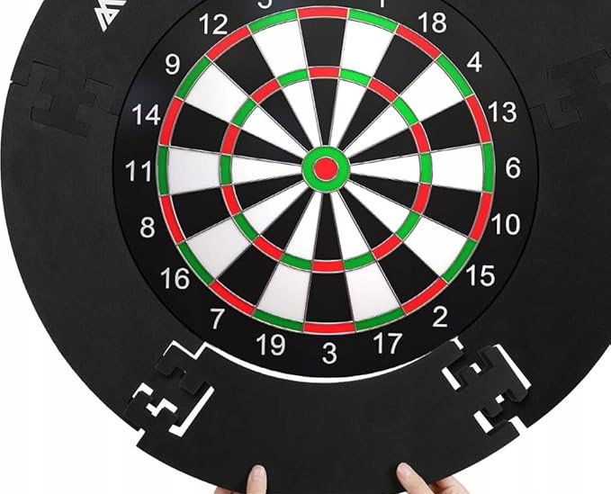 - Łatwy montaż: osłona ścienna tarczy do rzutek jest łatwa w instalacji i obsłudze. Pierścień składa się z 5 części, które łatwo do siebie pasują. Wystarczy przymocować go do ściany, a pozostanie mocno na swoim miejscu bez dodatkowego mocowania lub montażu.