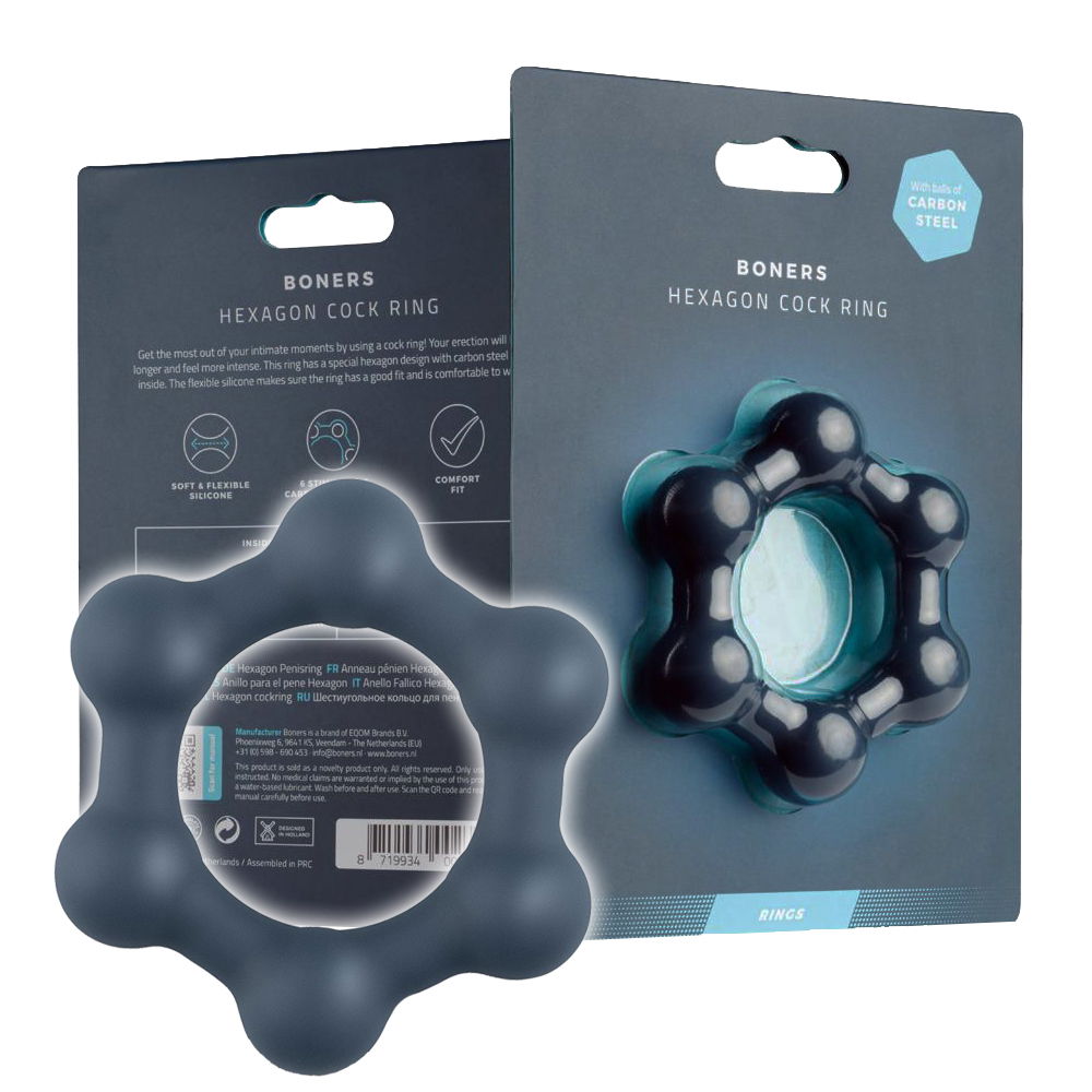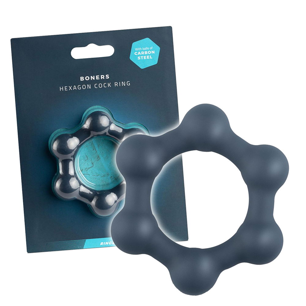 Rozciągliwy, uciskowy pierścień na penisa podtrzymujący erekcję. Pierścień utrudnia odpływ krwi z penisa, dzięki czemu członek staje się znacznie twardszy a czas trwania wzwodu wydłuża się. Pierścień erekcyjny na penisa z 6 kulkami stymulującymi.