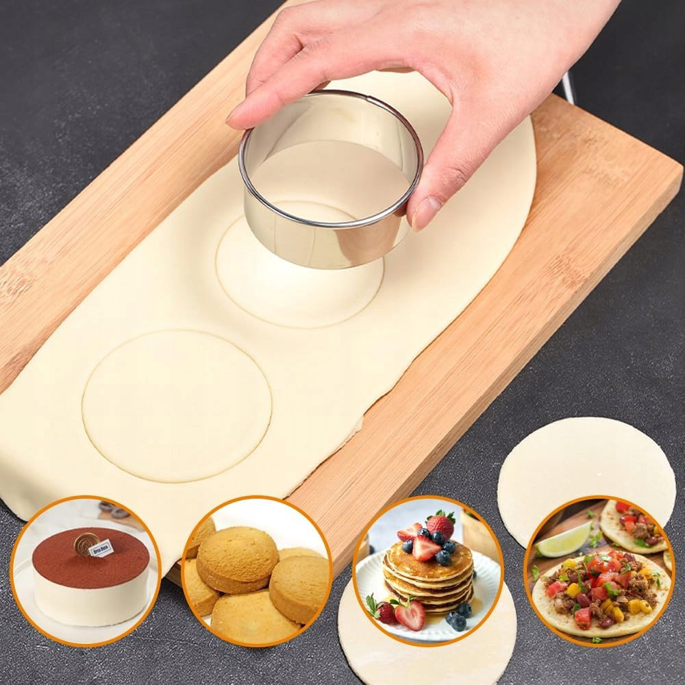 Ten zestaw 4 okrągłych pierścieni do ciasta ze stali nierdzewnej to niezbędne narzędzie do formowania, wykrawania i składania deserów warstwowych – czysto, równo i efektownie.