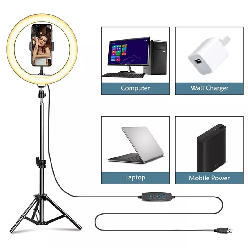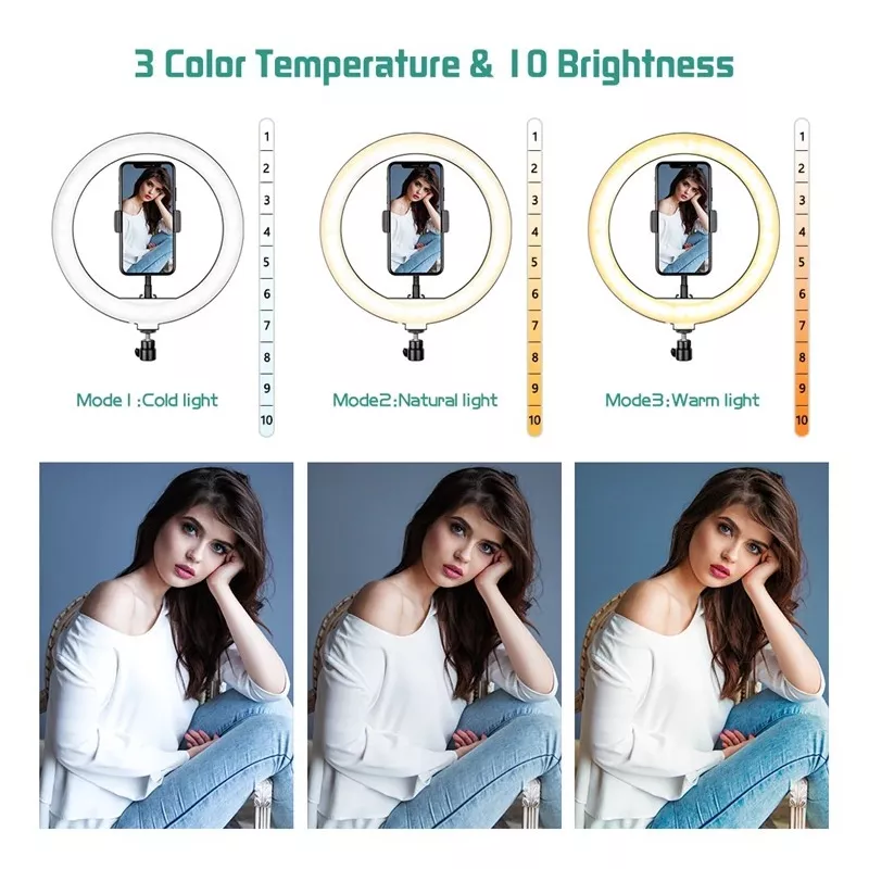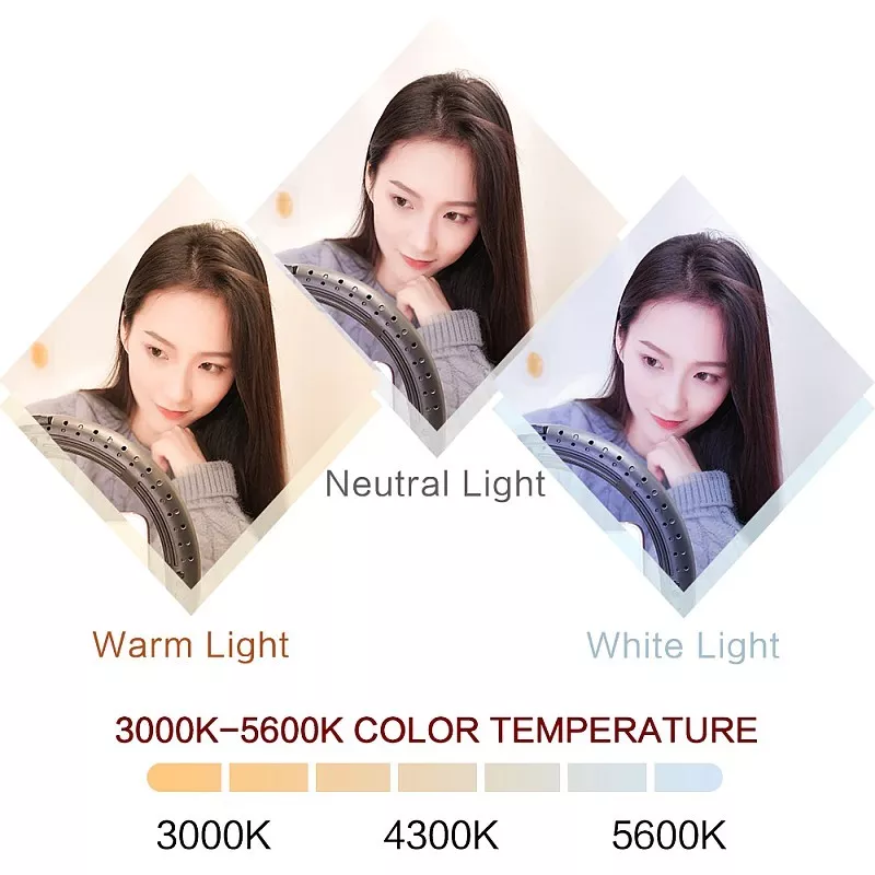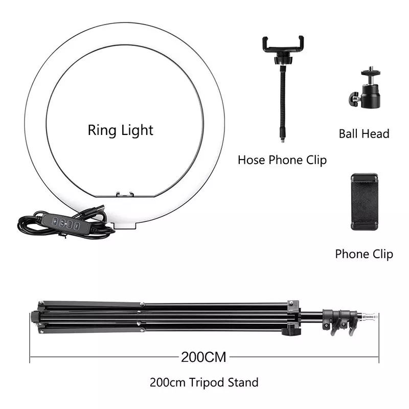 W zestawie lekki regulowany aluminiowy statyw od 0,75m do 2m.Jasność i barwa światła lampy pierścieniowej jest regulowana za pomocą panelu sterowania umieszczonego na przewodzie zasilającym. Dołączony do zestawu statyw pozwala na umieszczenie lamy na odpowiedniej wysokości. Połączenie lampy, statywu oraz uchwytu jest uniwersalne na gwint 1/4 cala. Możemy na nim zamontować aparaty cyfrowe, lustrzanki lub kamery. Parametry techniczne: