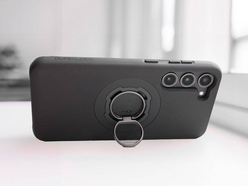 Oczywiście, aby zamontować teleon na podstawie Quad Lock, należy zdjąć pierścień/stojak na telefon Quad Lock z etui na telefon.