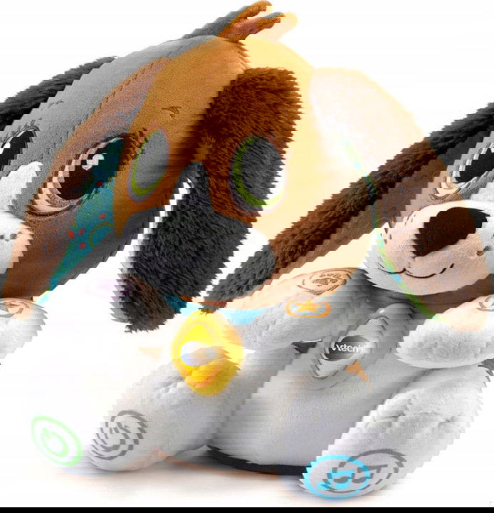 Mali odkrywcy znajdą w tym uroczym psie lojalnego przyjaciela, który wesprze ich optymalnie w rozwoju języka. Po naciśnięciu kolorowych guzików na łapkach dzieci uczą się nazywać cyfry, litery i uczucia. Szczególnie zabawny efekt powstaje, gdy psiak papuguje wypowiedzi dziecka zniekształconym głosem i tym samym inspiruje do świetnych gier fabularnych.