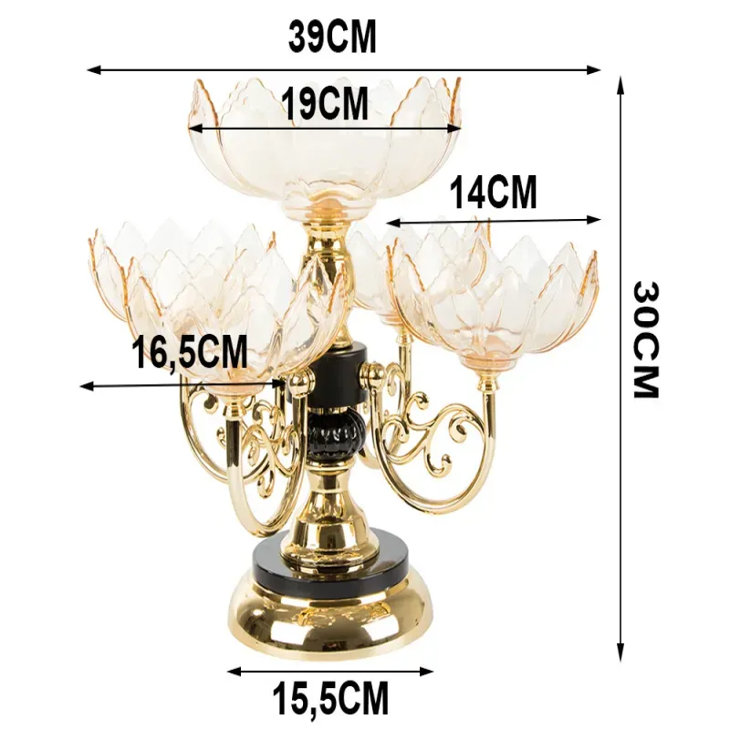 Elegancka patera została wyposażona w pięć miseczek z których cztery są zamontowane na mechanizmie obrotowym ułatwiającym serwowanie przekąsem naszym gościom.