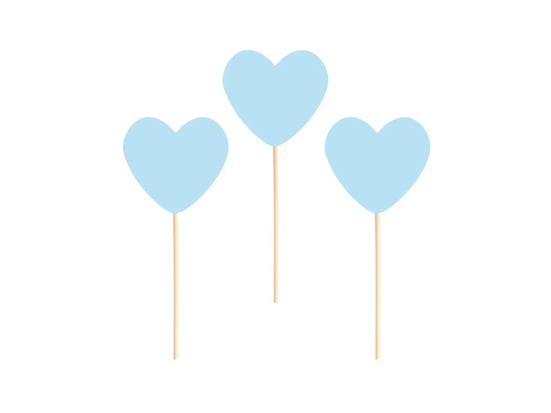 Pikery dekoracyjne w motywie "Serca" w kolorze niebieskim. W zestawie znajduje się 6 sztuk o wysokości ok 9 cm. Idealne na babeczki lub ciasta, aby zaznaczyć motyw przewodni uroczystości, a także dodać dodatkowej dekoracji na wypiekach.