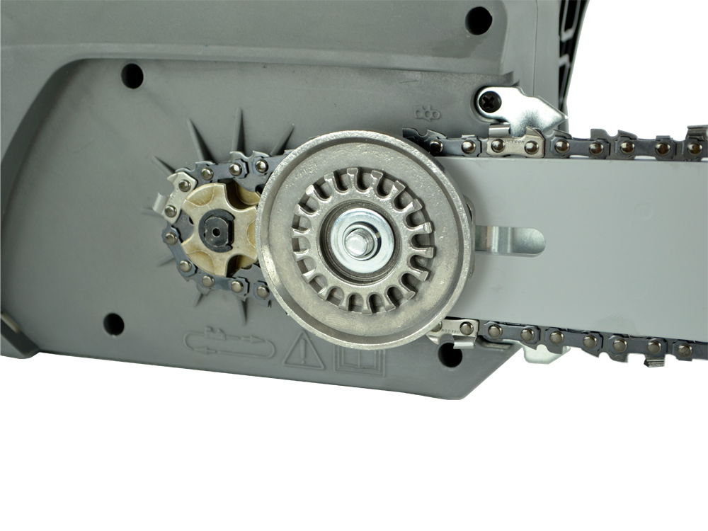 Pilarka posiada metalowy grzebień oporowy, automatyczny system smarowania łańcucha i prowadnicy. Dołączona do zestawu prowadnica wyposażona jest w łożyska igiełkowe zamontowane na końcówce obrotowej, dzięki czemu znacznie wzrasta jej żywotność, a konstrukcja pozwala na jej odwracanie, co wydłuża okres użytkowania.