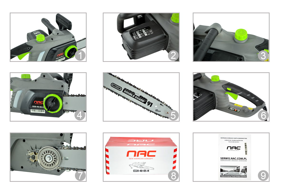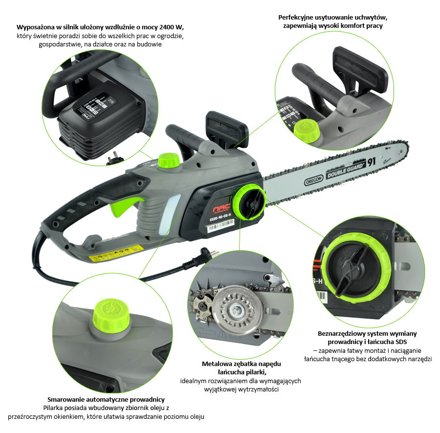 PIŁA ELEKTRYCZNA NAC 2000 W SZYBKI NACIĄG ŁAŃCUCHA OSPRZĘT OREGON 40 CM