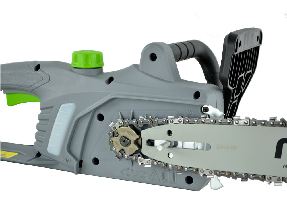 Została wyposażona w wytrzymały silnik elektryczny o mocy 1600 W. W urządzeniu zastosowano najwyższej jakości łańcuch tnący i prowadnicę firmy NAC o długości 35 cm ( 14" ).