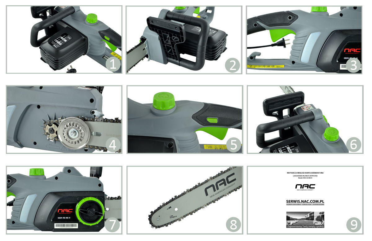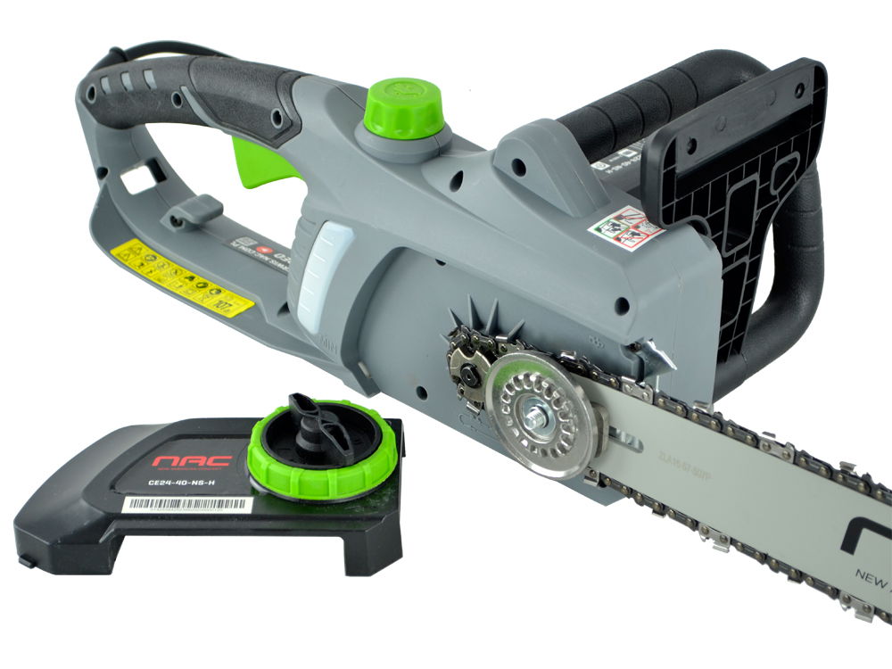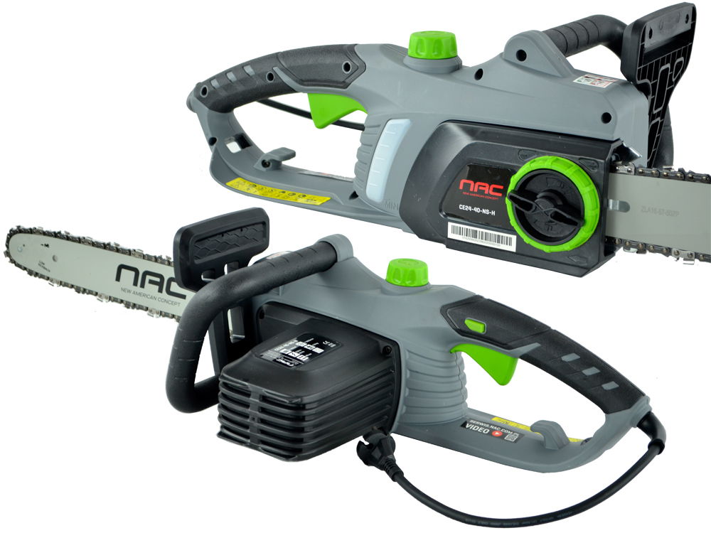 Elektryczna pilarka łańcuchowa firmy NAC o symbolu CE24-40-NS-H została wyposażona w wytrzymały silnik elektryczny o mocy 2400 W. W urządzeniu zastosowano najwyższej jakości łańcuch tnący i prowadnicę firmy NAC o długości 40 cm ( 16" ).