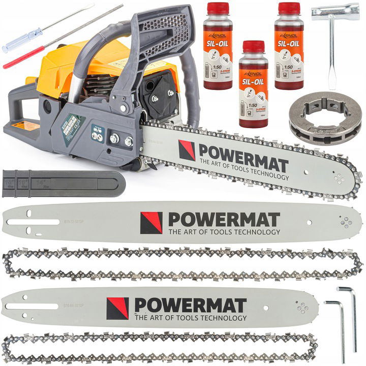 Piła spalinowa PM-PSP-6HP firmy POWERMAT jest najnowszym modelem piły spalinowej do zastosowań zarówno amatorskich jak i profesjonalnych. Maksymalna moc urządzenia to 6,0KM uzyskiwana przez silnik o pojemności 54cm³.