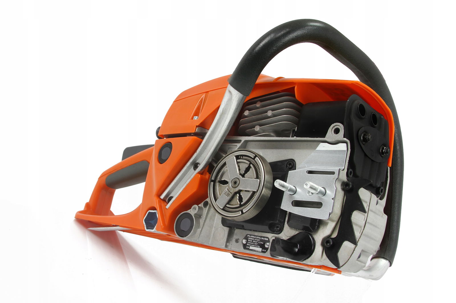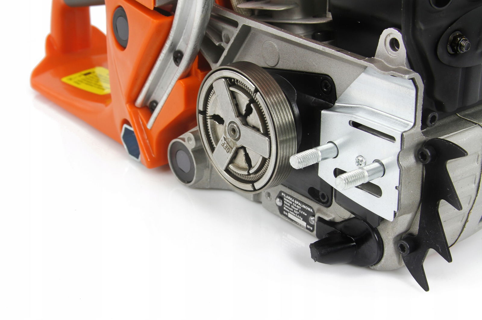 Piła spalinowa została wyposażona w niezbędne oprzyrządzenie