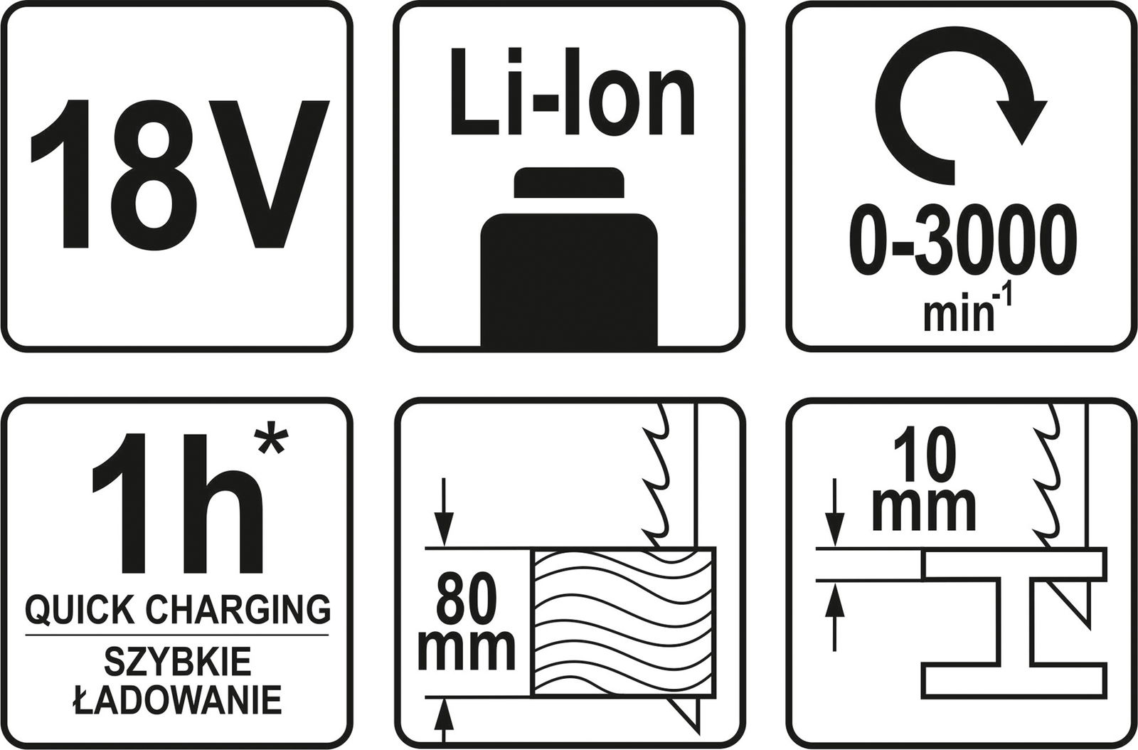 - w sprzedaży zapasowe akumulatory o pojemnościach: 2 Ah (YT-828461), 3 Ah (YT-828462), 4 Ah (YT-828463) i 6 Ah (YT-828464)