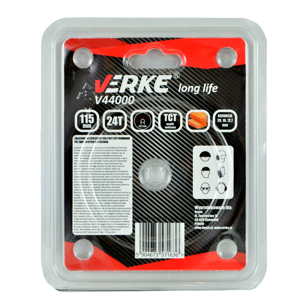 PIŁA TARCZA WIDIOWA DO CIĘCIA DREWNA 115x22,2 24 ZĘBY VERKE V44000 + REDUKCJE