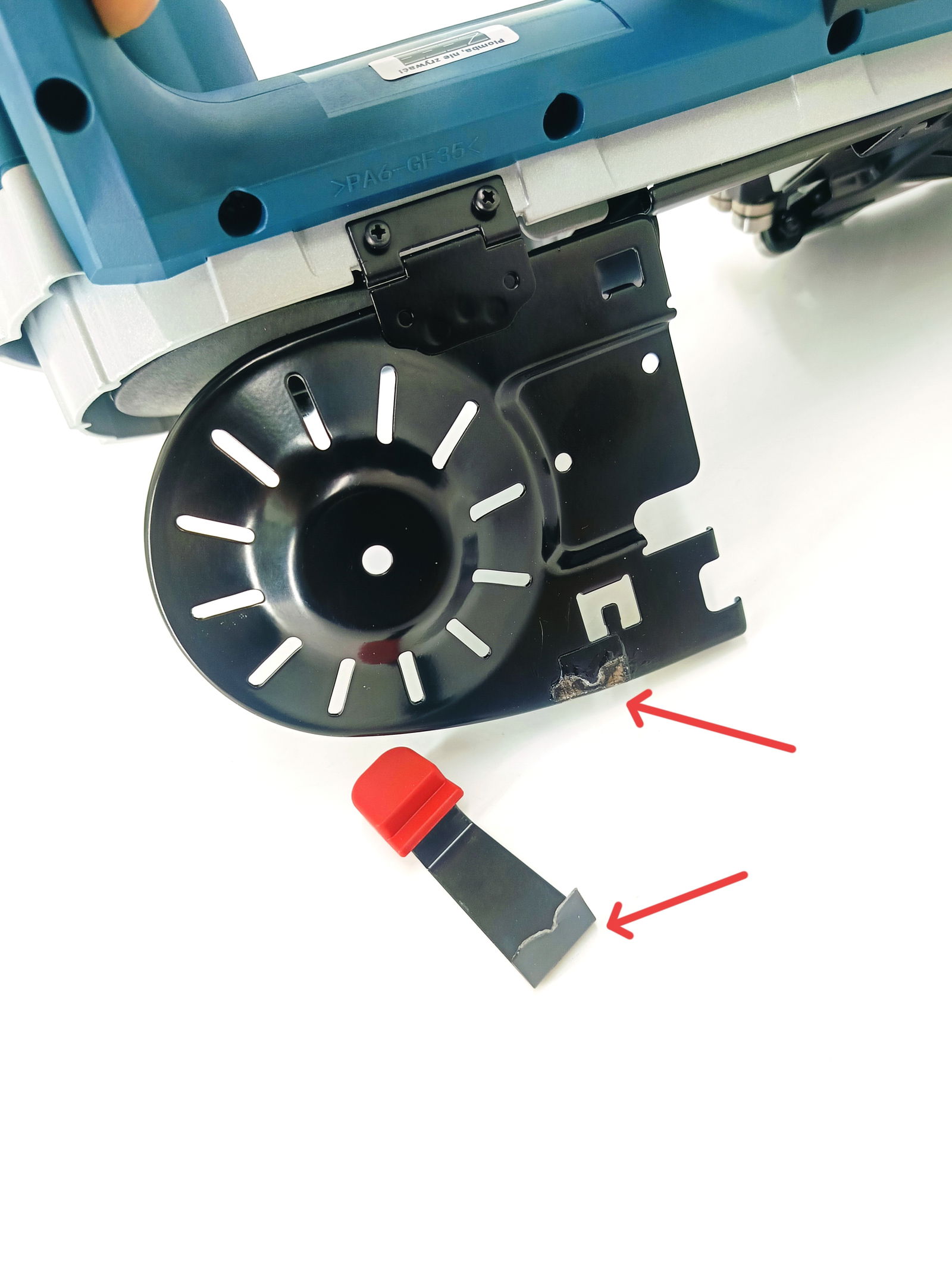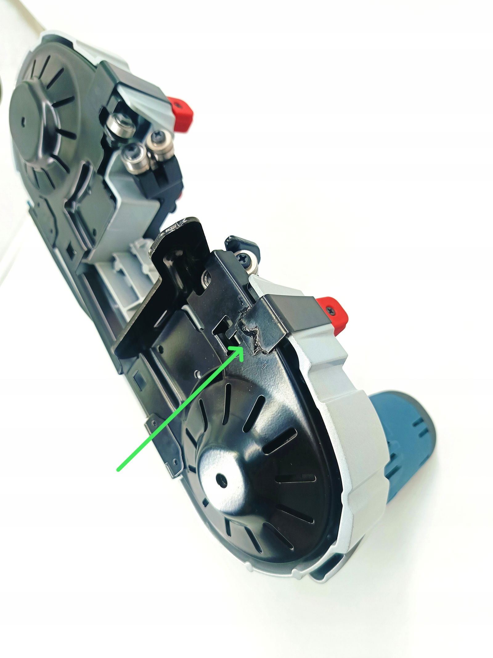 - Pilarka taśmowa Bosch GCB 18V-63 (z uszkodzonym zatrzaskiem osłony).