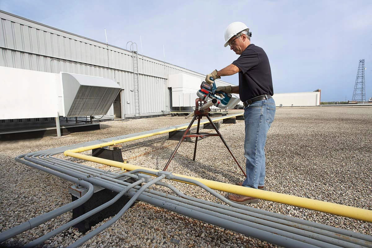 Model GCB 18V-63 to najbardziej kompaktowa akumulatorowa pilarka taśmowa w ofercie Bosch Professional. Została zaprojektowana z myślą o wygodnym i bezpiecznym cięciu w miejscach o utrudnionym dostępie. Dzięki wyjątkowo niskiej wadze i ergonomicznemu wyważeniu, praca tym narzędziem jest niemal bezwysiłkowa, nawet podczas cięcia nad głową.