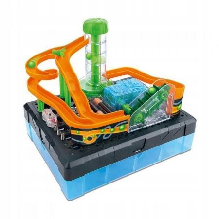 Stwórz miniaturowy system obiegowy z jedną przekładnią i baw się, poznając przy tym podstawowe zasady fizyki! W zestawie znajdziesz ponad 30 elementów, które należy ze sobą połączyć, tworząc konstrukcję. Po zainstalowaniu do zabawki baterii (niezawarte w zestawie), uruchomisz mechanizm, który wprawi kuleczki w ruch! Wśród elementów znajduje się także ekologiczne pudełko wielokrotnego użytku, w którym, po zakończonej zabawie, można przechowywać drobne elementy zestawu.