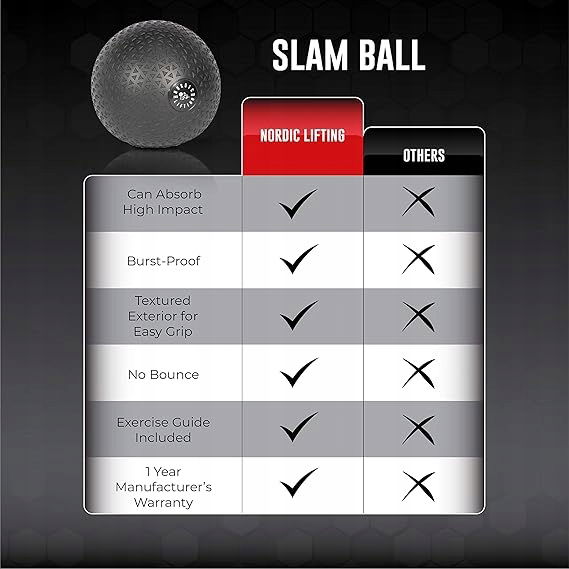 W ZESTAWIE: 1x Nordic Lifting Slam Ball, przewodnik po ćwiczeniach