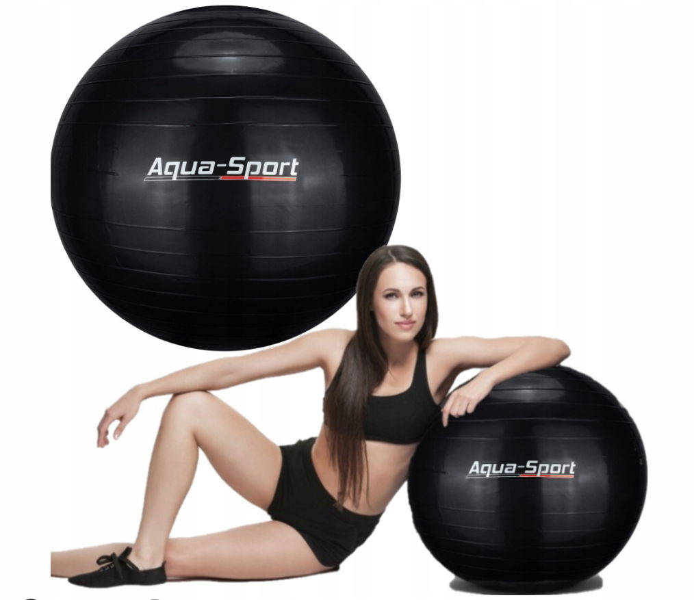 AQUA-SPORT POWERSTRECH ANTIBURST PIŁKA GIMNASTYCZNA BLACK 75CM AS0075