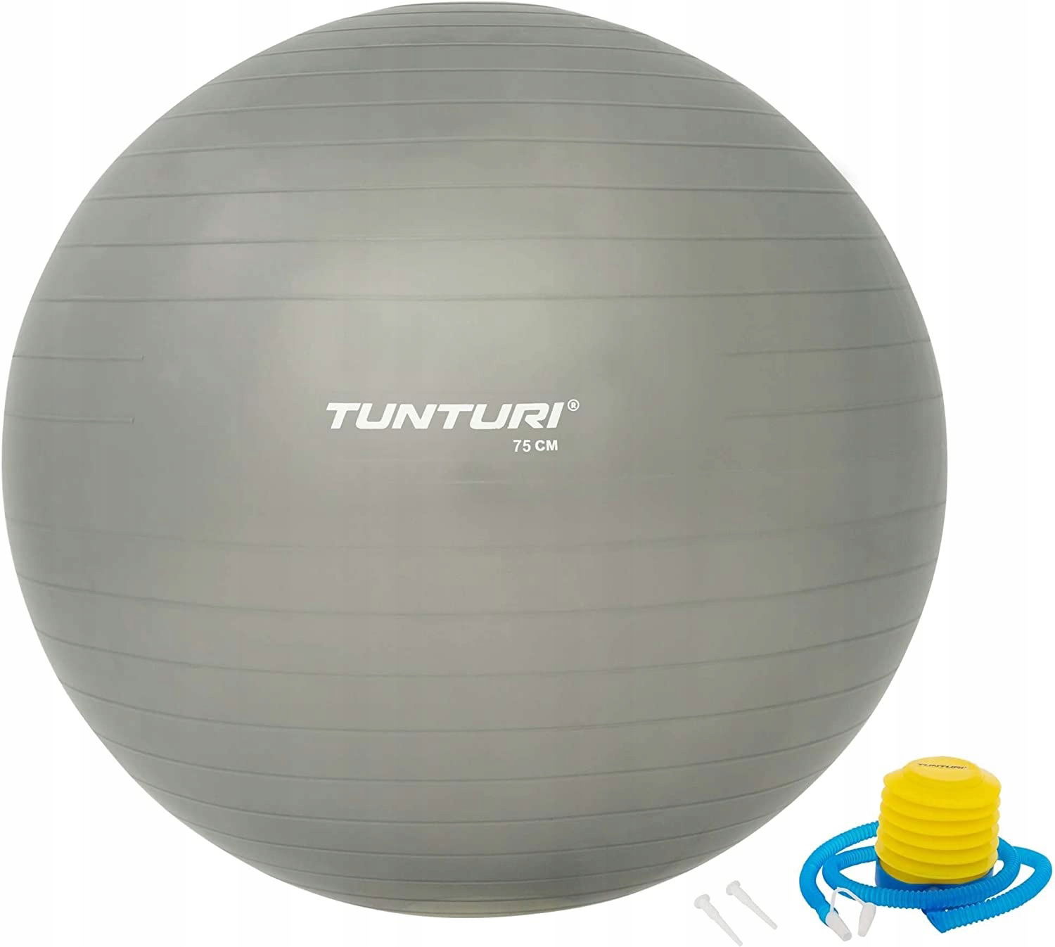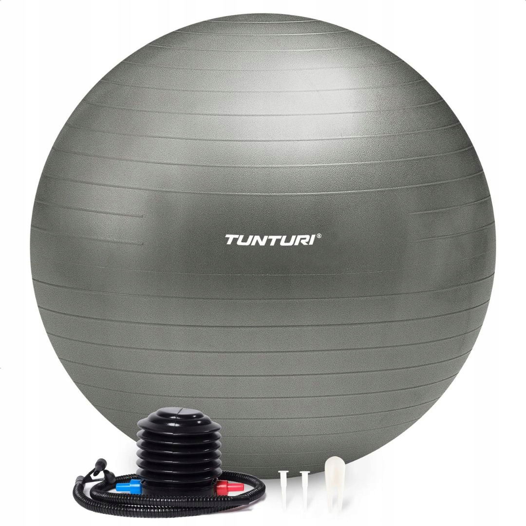 Duża piłka gimnastyczna Tunturi 75 cm do ćwiczeń core, pilatesu i rehabilitacji. Trwałe, antypękające tworzywo i pewny chwyt ułatwiają bezpieczny trening w domu i na siłowni. W komplecie pompka i akcesoria, więc od razu napompujesz piłkę i zaczynasz ćwiczyć.