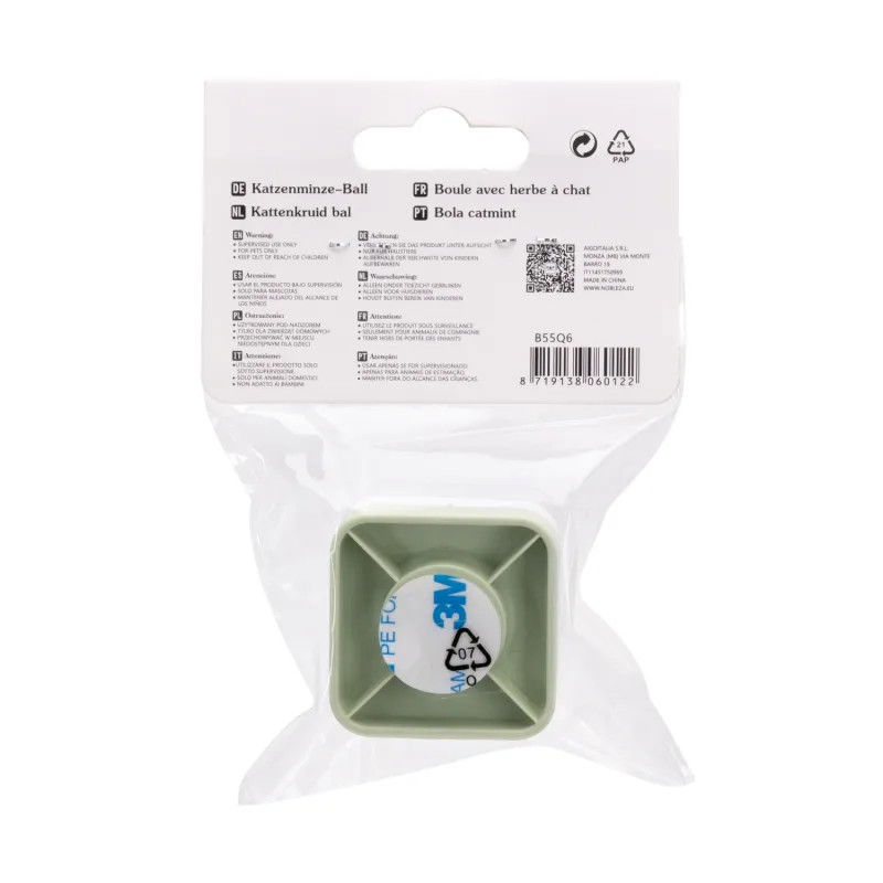 Kulka kocimiętki w uchwycie, który można przykleić na przykład do ściany. Koty uwielbiają kocimiętkę, a ta kulka w zamykanym uchwycie znacznie ułatwia lizanie. Piłka z kocimiętką z uchwytem: